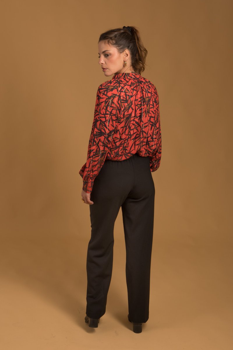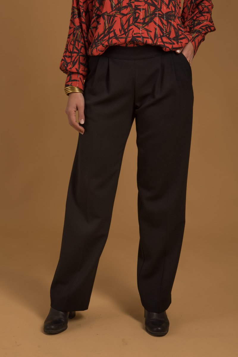 Le pantalon noir en laine pour femme, confectionné dans un beau tissu luxueux noir d’origine française reconnu pour son sublime tombé.
