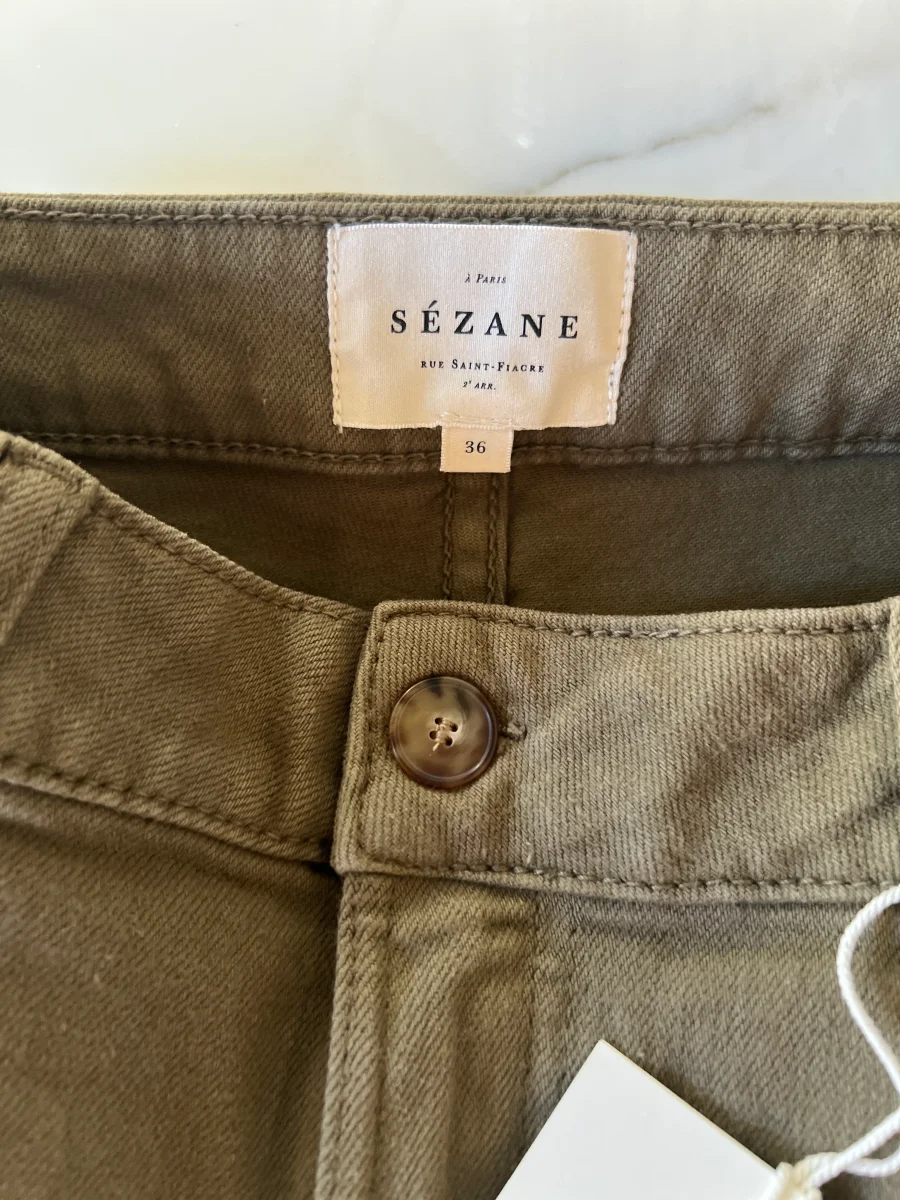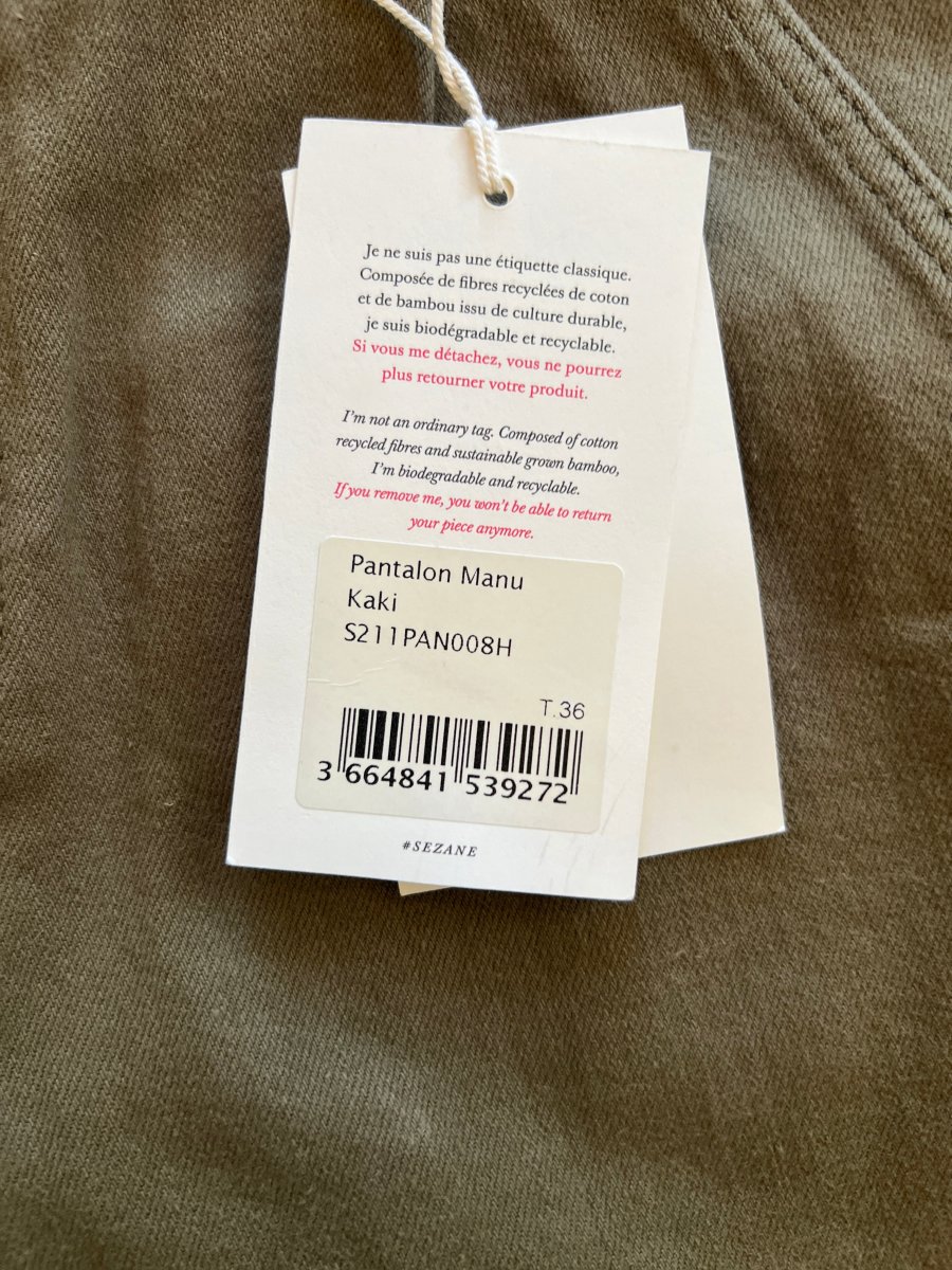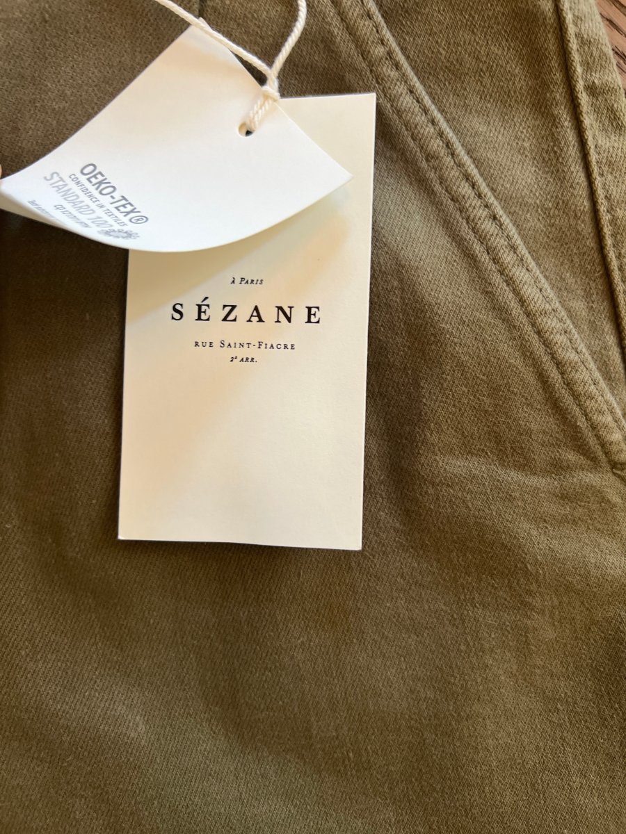 Neuf avec étiquettes Marque : Sezane Modèle : Manu Collection actuelle sur le site Taille 36 ( peut convenir à une taille 38) 99% Coton – 1% Elasthane Doublure : 100% Coton Pour la longueur je mesure 1m71 Prix d’achat estimé neuf 110€