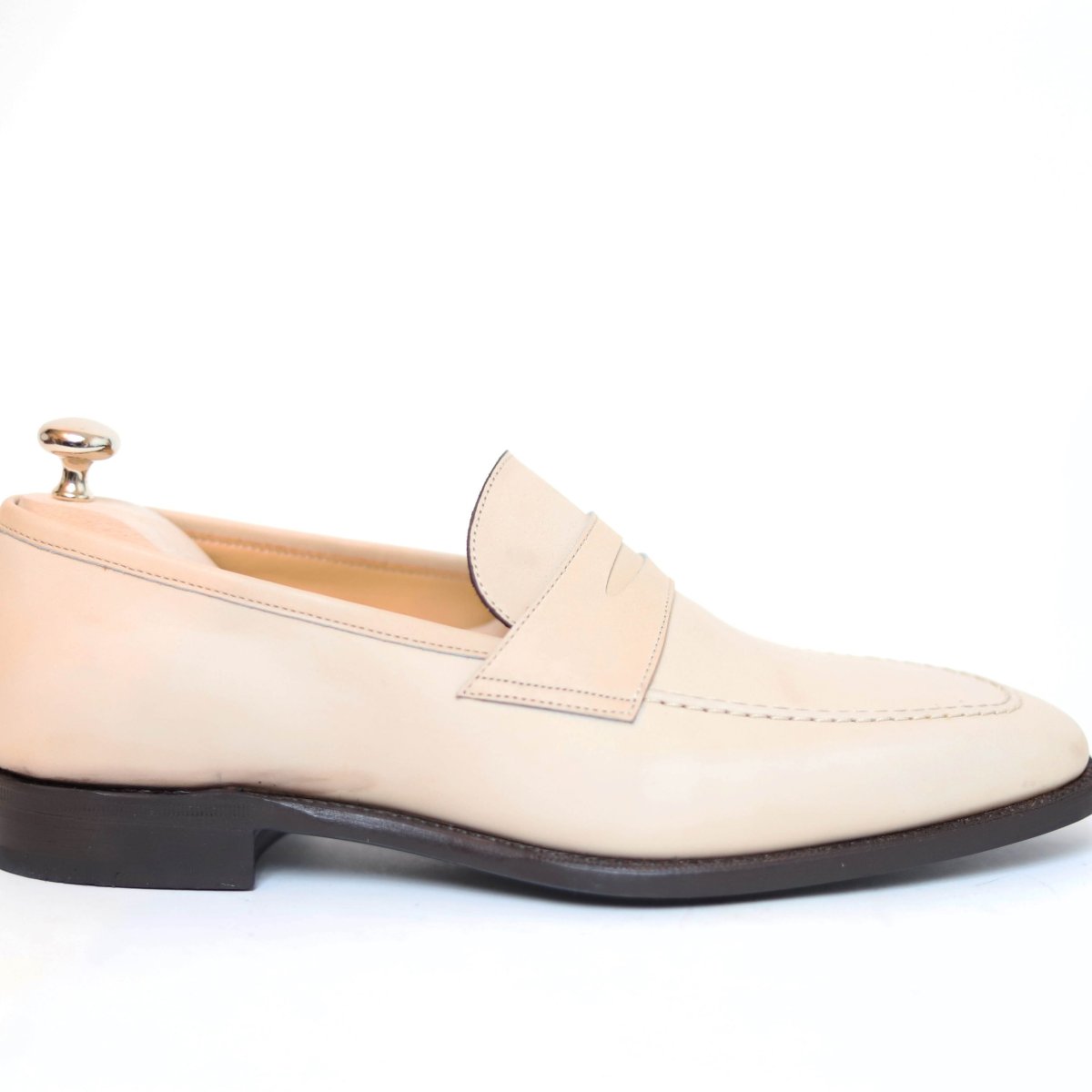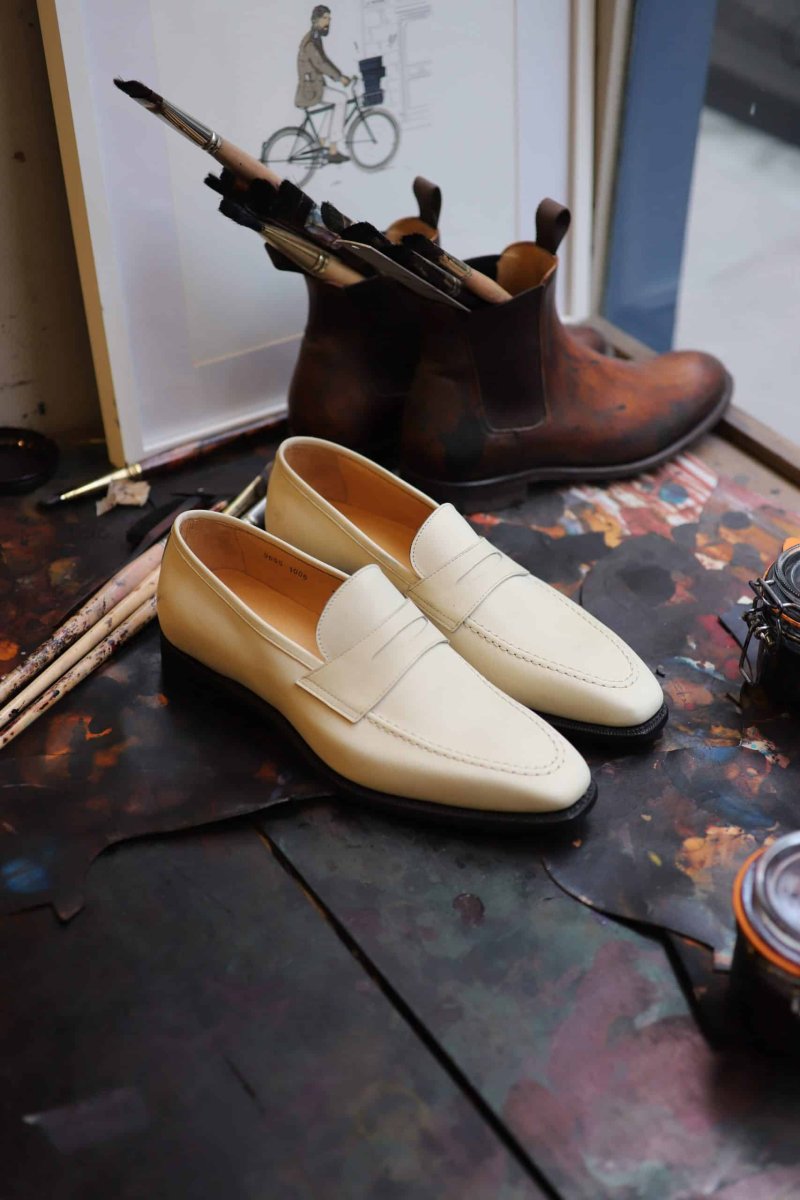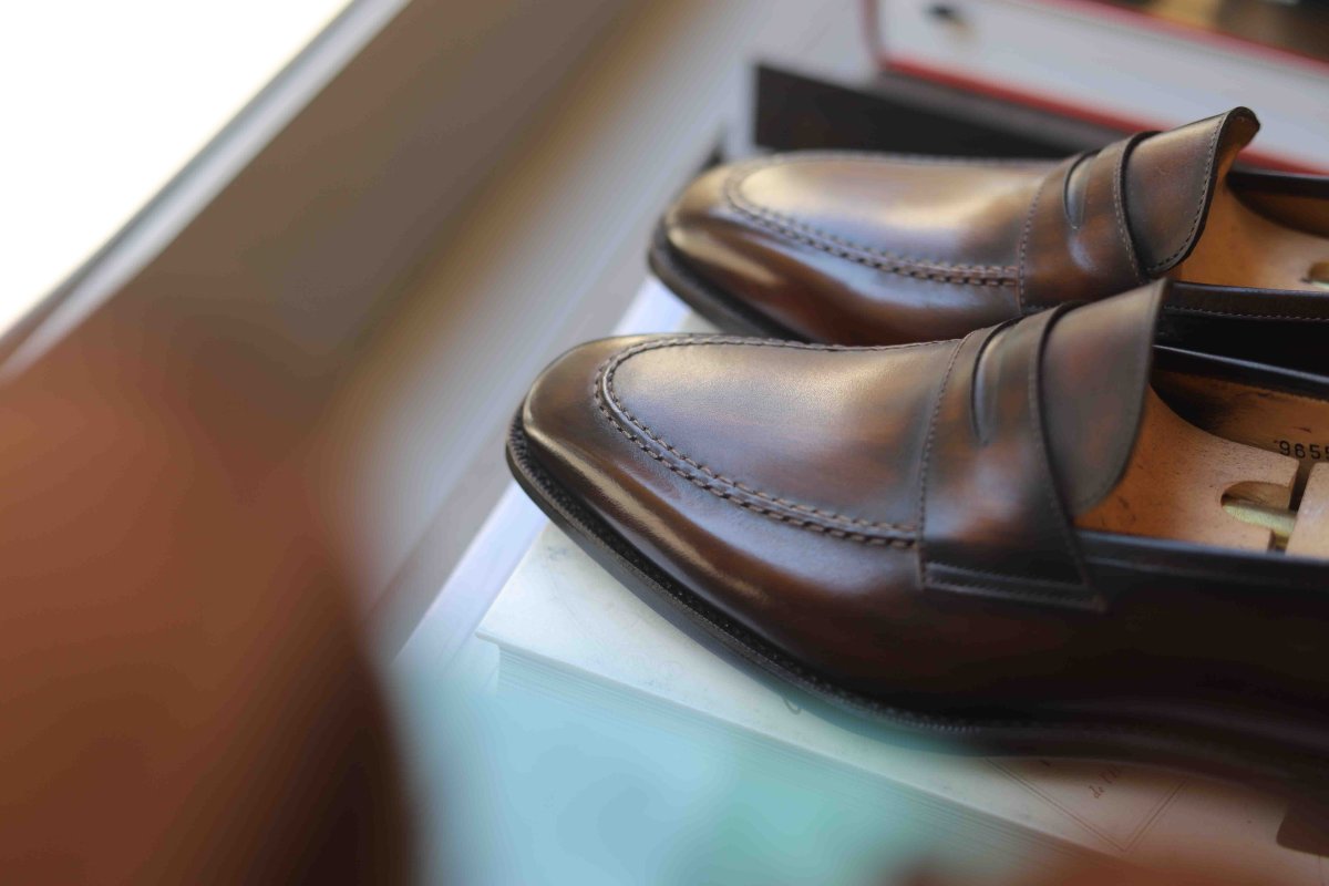 Penny loafer Last : 374 (fine shape) Leather : Box calf (du Puy tannery , France) Lining : Calf Sole : Extra slow tanned leather Cambrion : Double wood highlighted Welt : Goodyear To choose your patina, nothing could be simpler: send us a message via the « contact » tab describing your wish! Do not hesitate to attach photos.