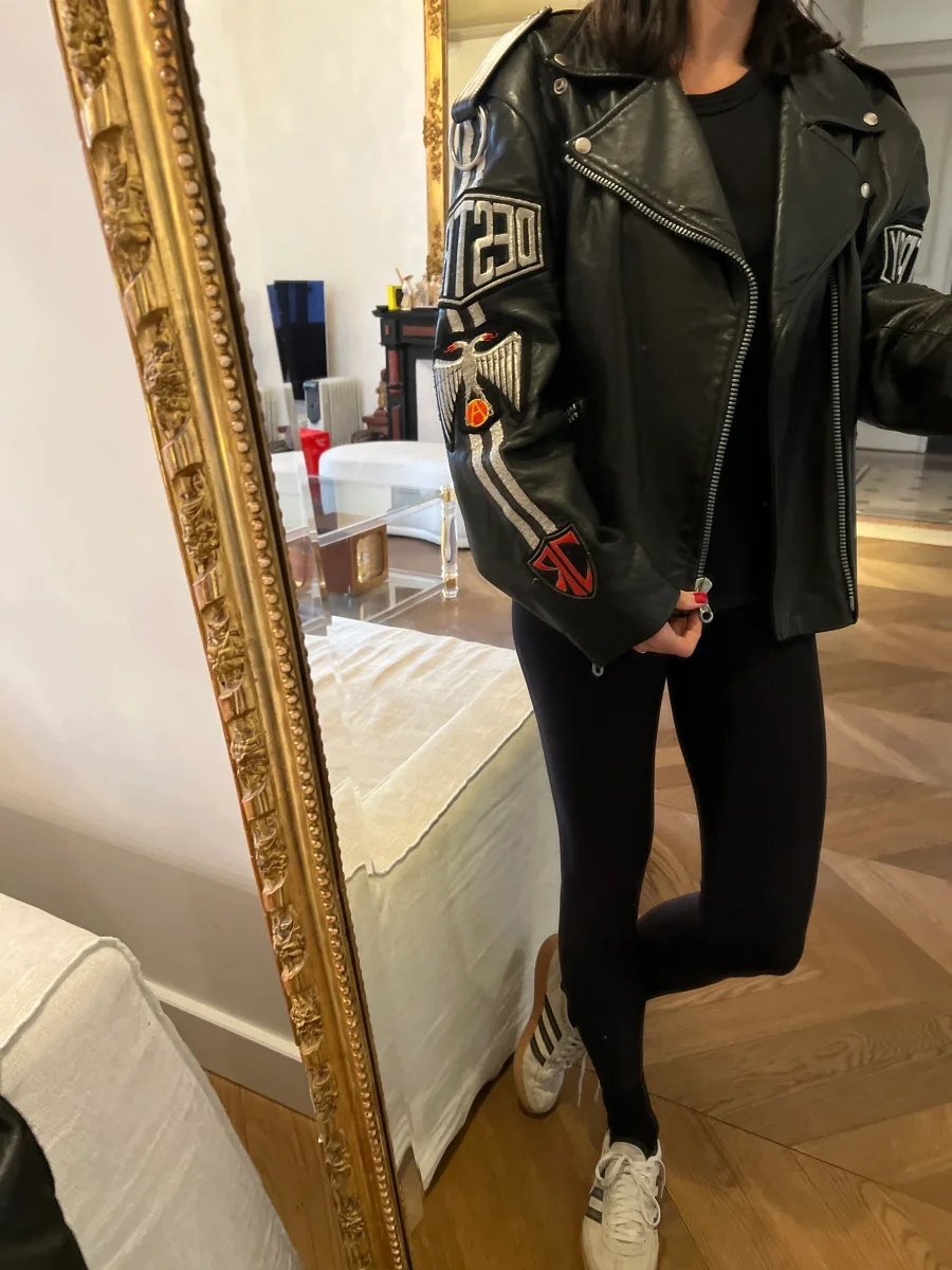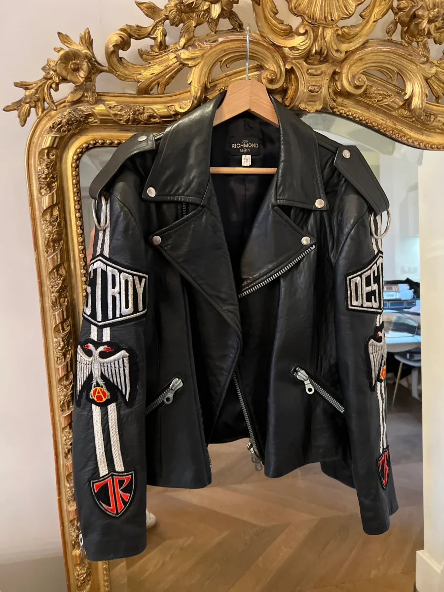 Très bon état général Taille L Marque : John Richmond 100% cuir Pour la longueur je mesure 1m71 Prix d’achat estimé neuf 1450€