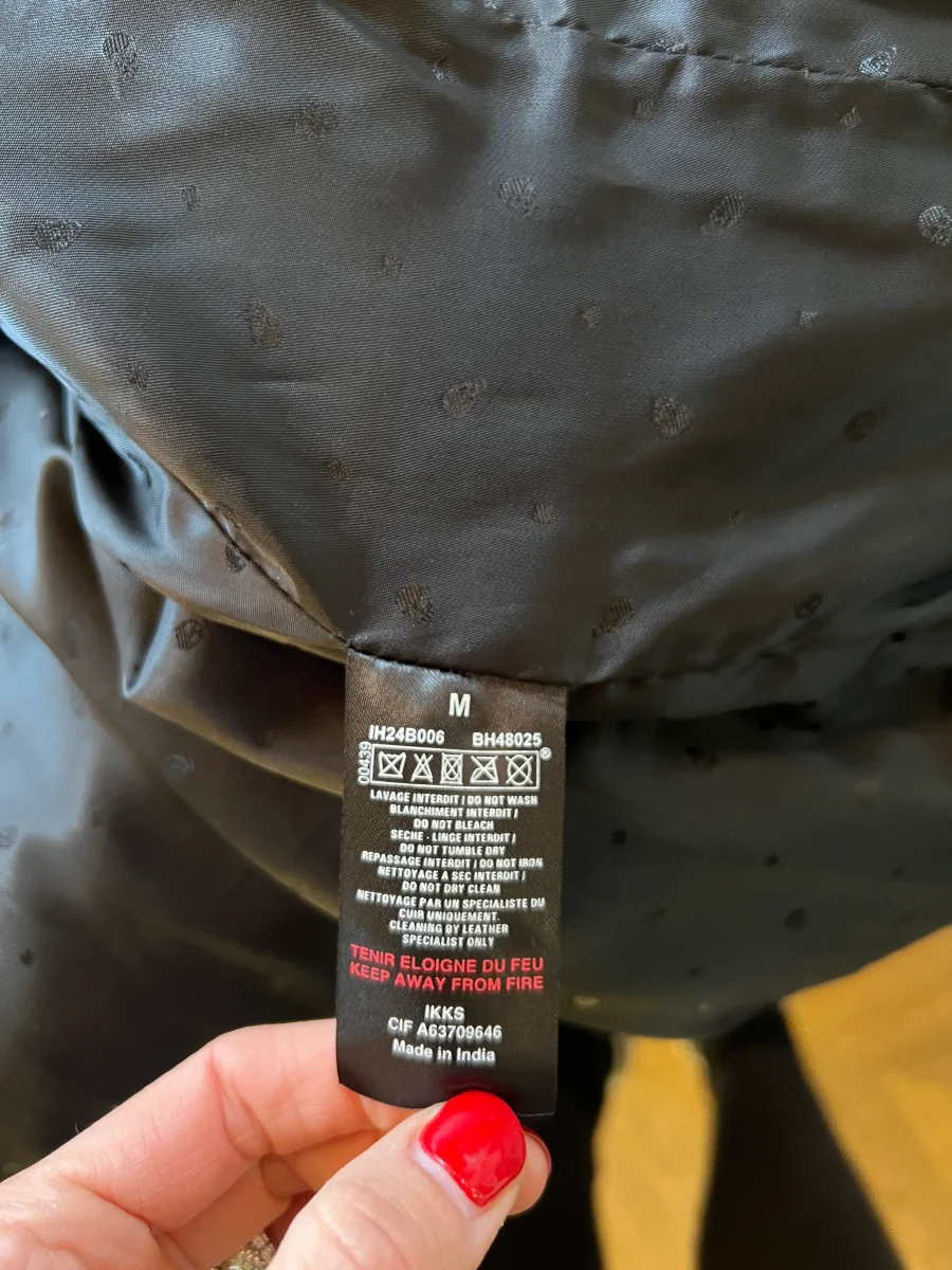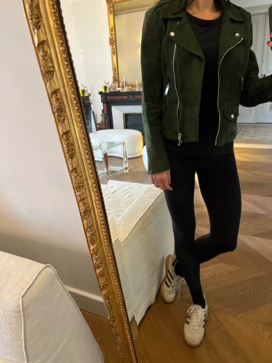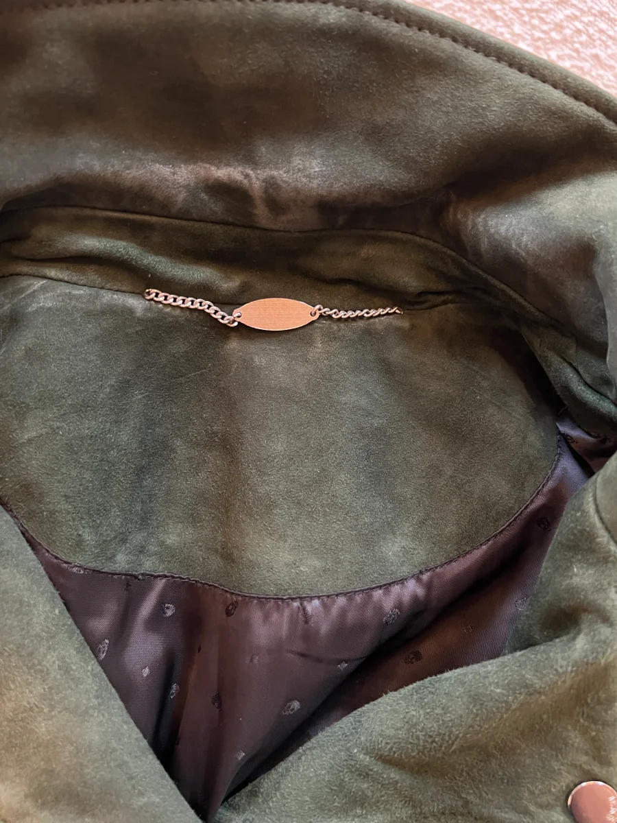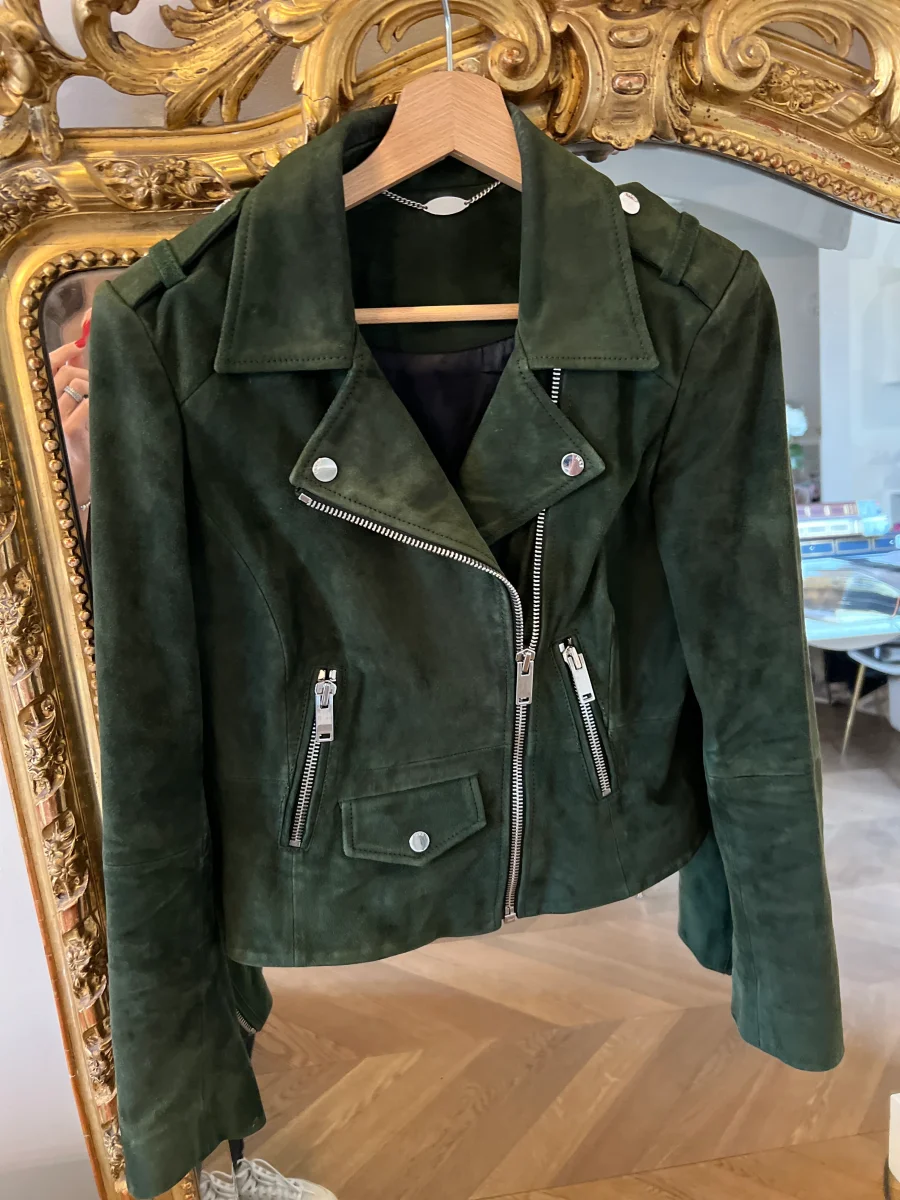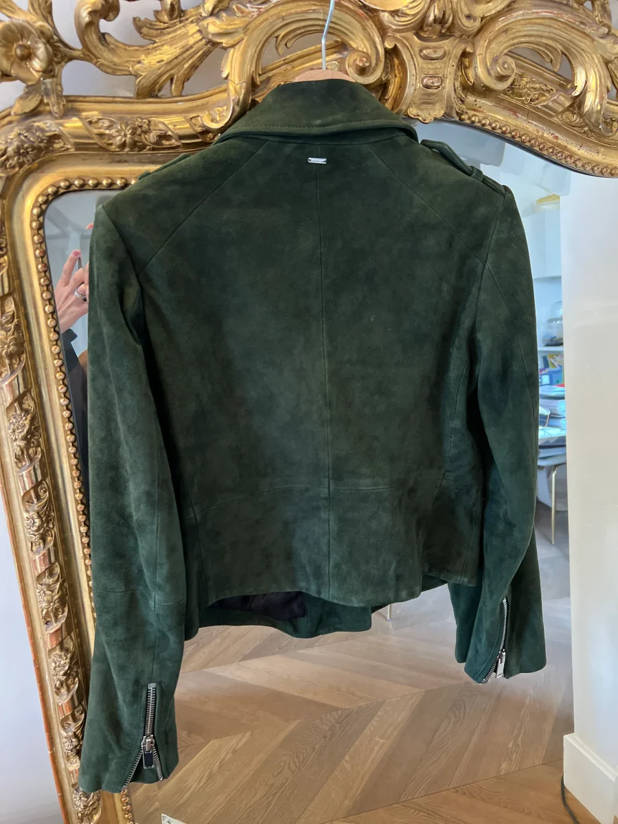 Très bon état général (daim au niveau du col légèrement fané cf.photos) Taille M Marque : IKKS 100% cuir Pour la longueur je mesure 1m71 Prix d’achat estimé neuf 395€