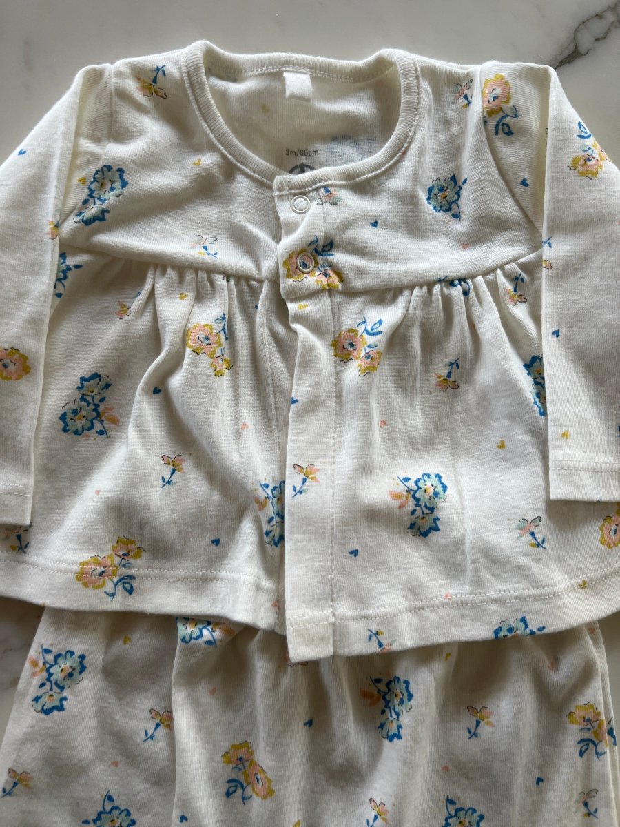 Petit Bateau – Ensemble Pyjama à fleurs T.3 mois