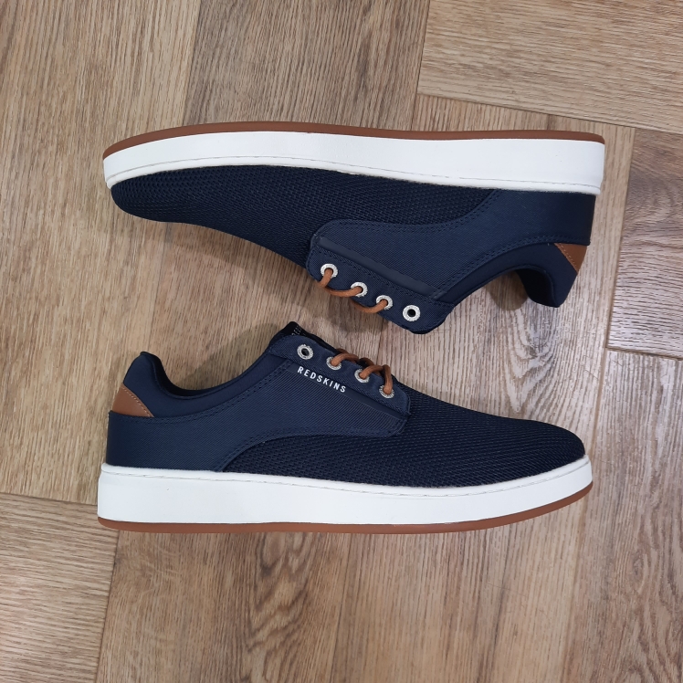 Baskets Homme REDSKINS SHOES Modèle : PACHIRA 2 Coloris : Bleu marine et Cognac Matière : Synthétique et Textile Doublure : Textile Semelle intérieure : Textile Semelle extérieure : Gomme Fermeture à lacets Talons plats Référence fournisseur : PACHIRA 2 MAR/COGNAC