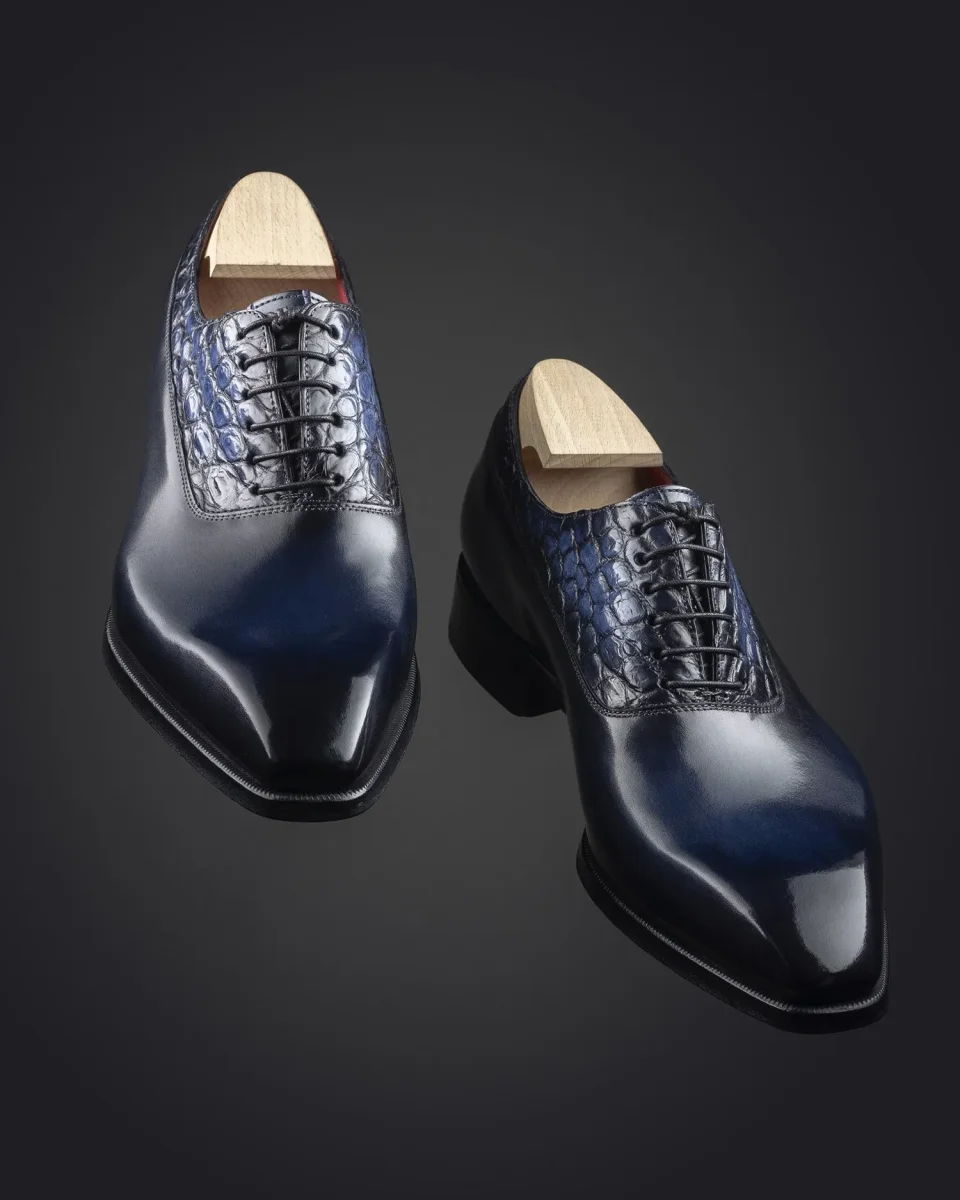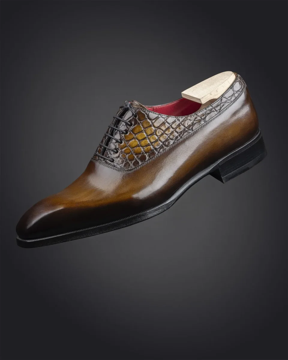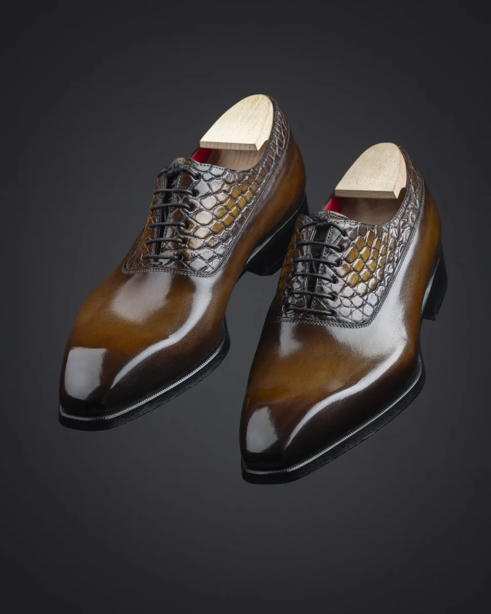 Richelieu à Balmoral en cuir de veau et crocodile