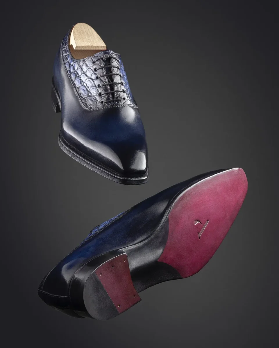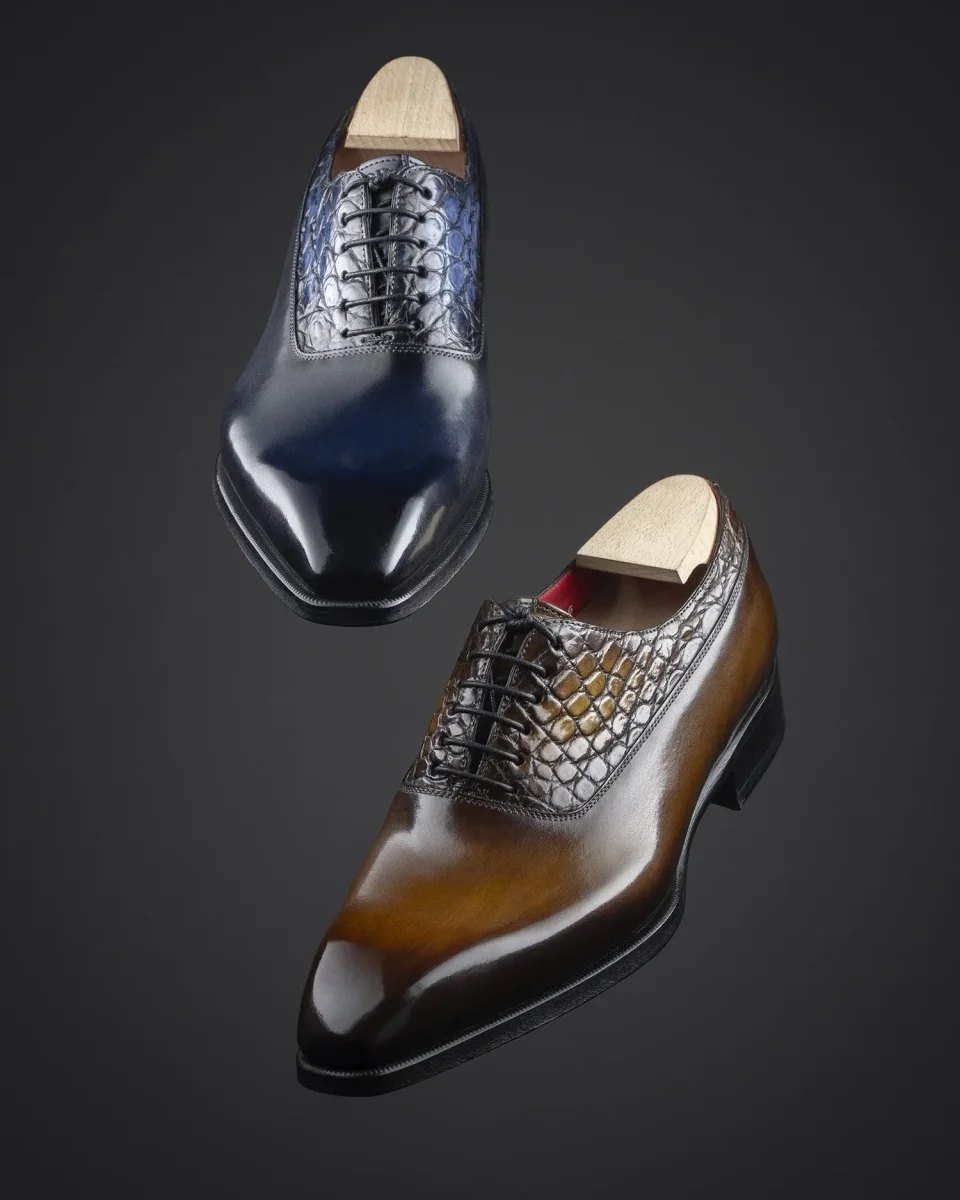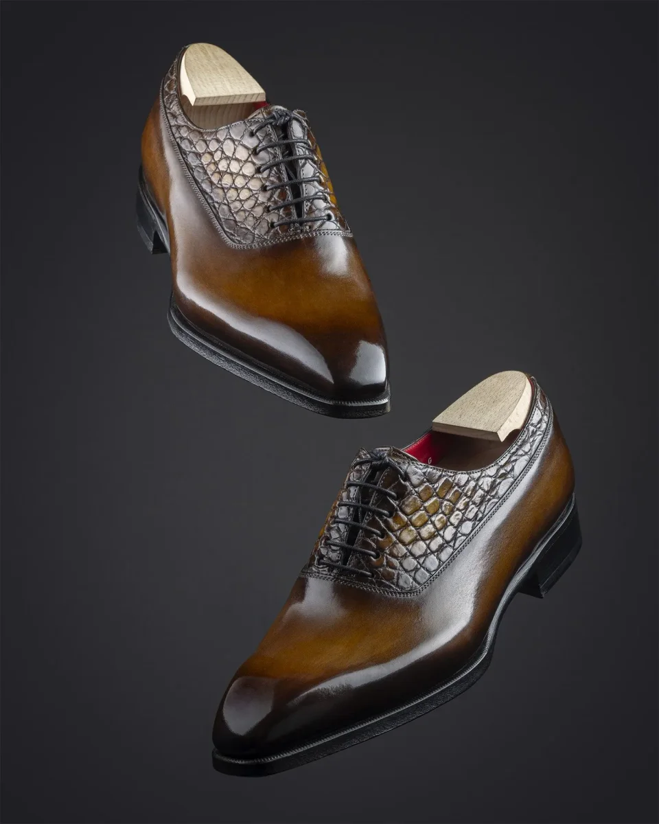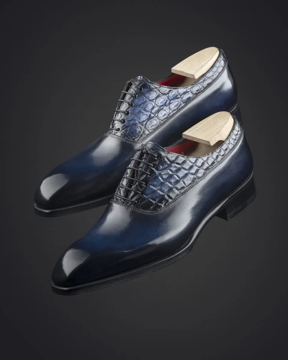 Richelieu à Balmoral en cuir de veau et crocodile