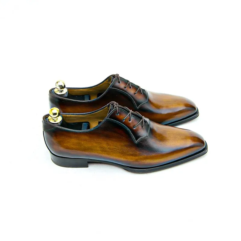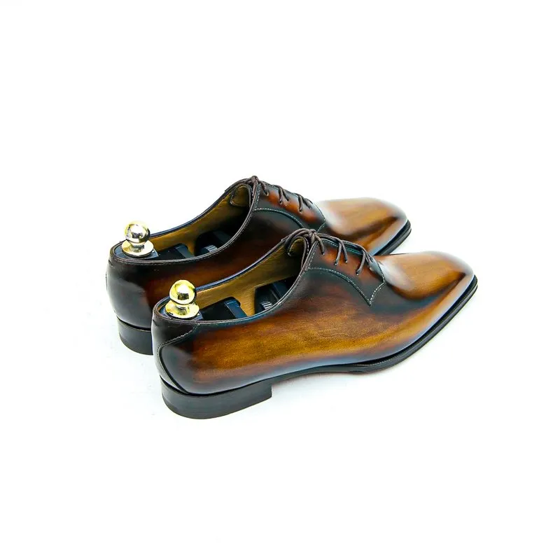 Ce soulier est un Richelieu à plastron monté sur notre toute nouvelle forme Senzo, dont le chaussant est généreux et ajusté.