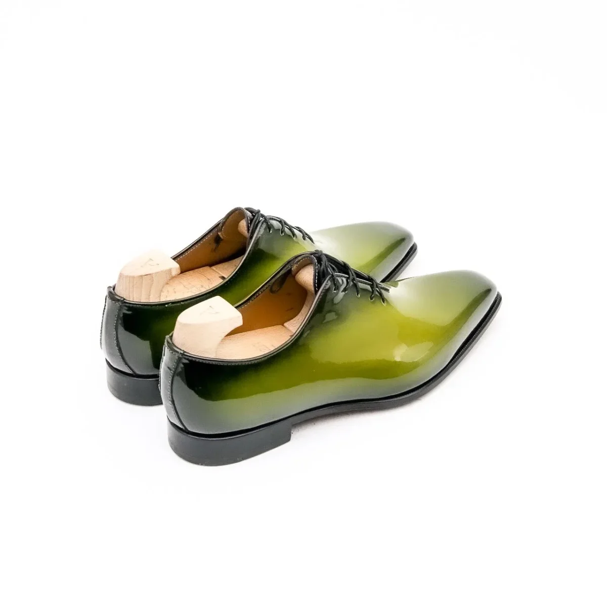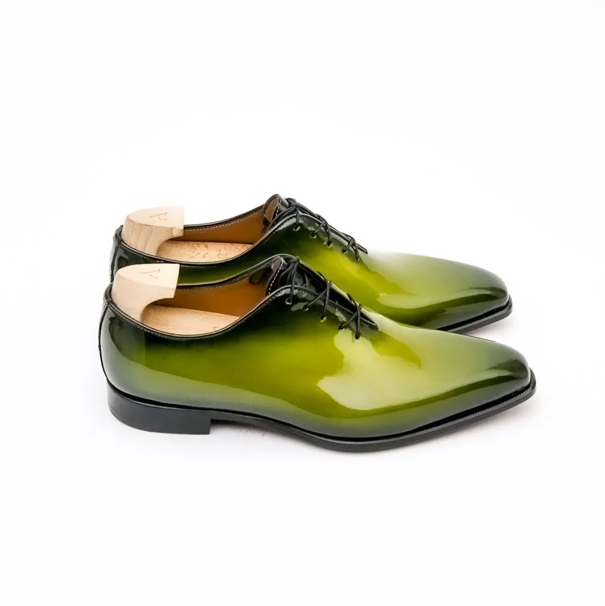 Notre richelieu One Cut prend une toute nouvelle dimension avec cette peausserie vernis permettant de vous proposer une patine à la carte. Traditionnellement le soulier vernis est une chaussure de cérémonie réalisée le plus souvent en noir. Associé à la patine, le verni perd son coté « tradi » pour une touche plus Rock’n Roll.