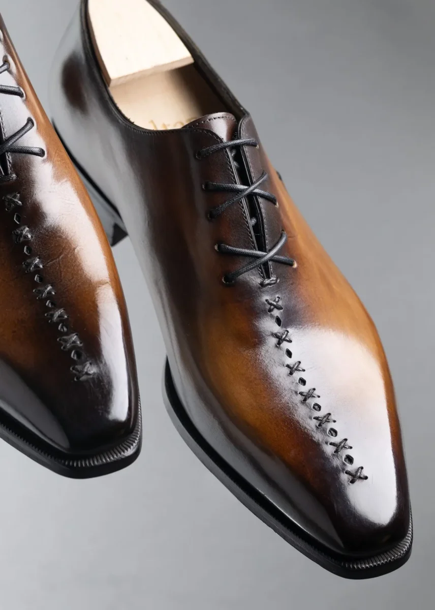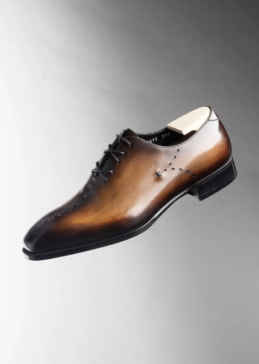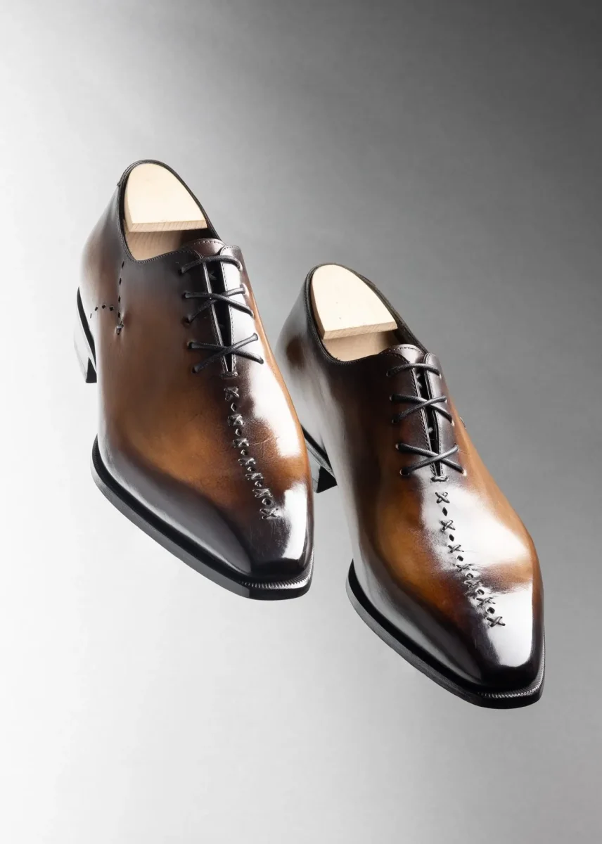 La patine artisanale, aux nuances profondes de brun et marron, met en valeur la qualité du cuir et rend chaque paire unique. Élégant et intemporel, le modèle Armand est idéal pour les occasions formelles, le costume d’affaires ou les tenues habillées contemporaines.