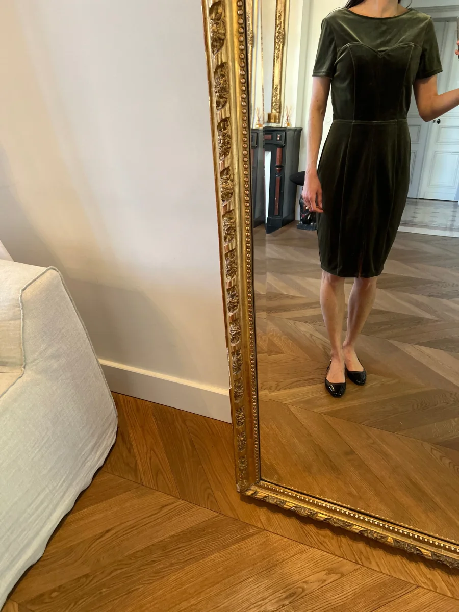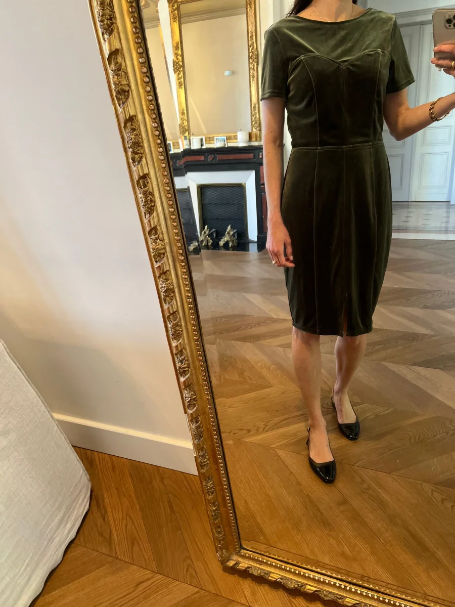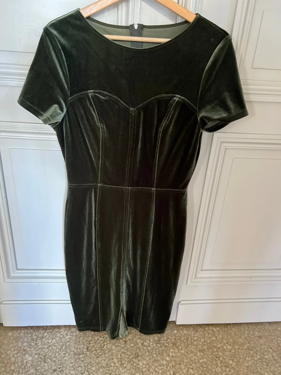 Robe Paper Dolls London kaki en velours