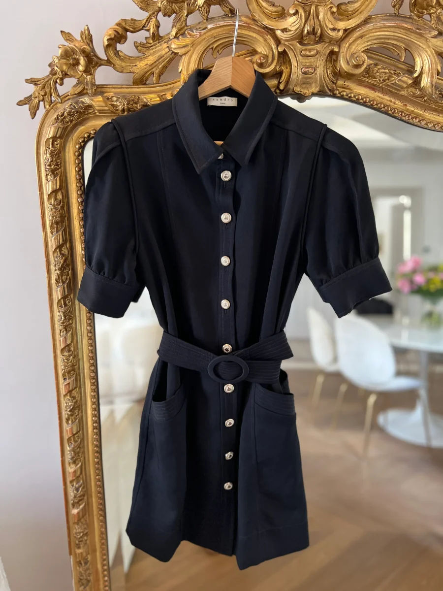 Ariane Brodier Robe Sandro noire manches plumetis