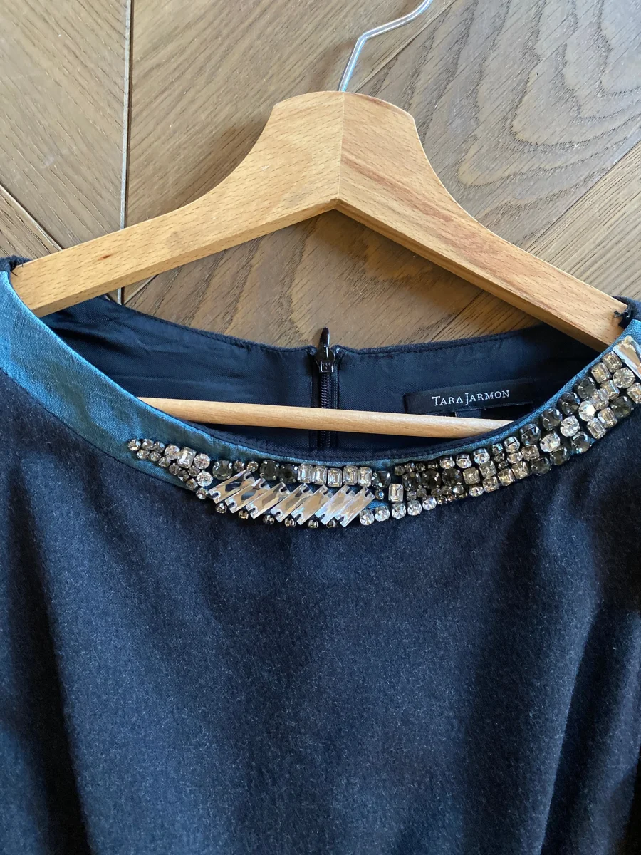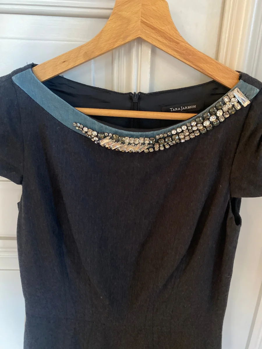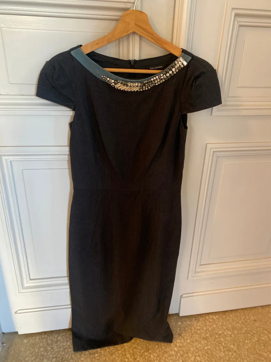 Robe Tara Jarmon en laine grise avec col collier