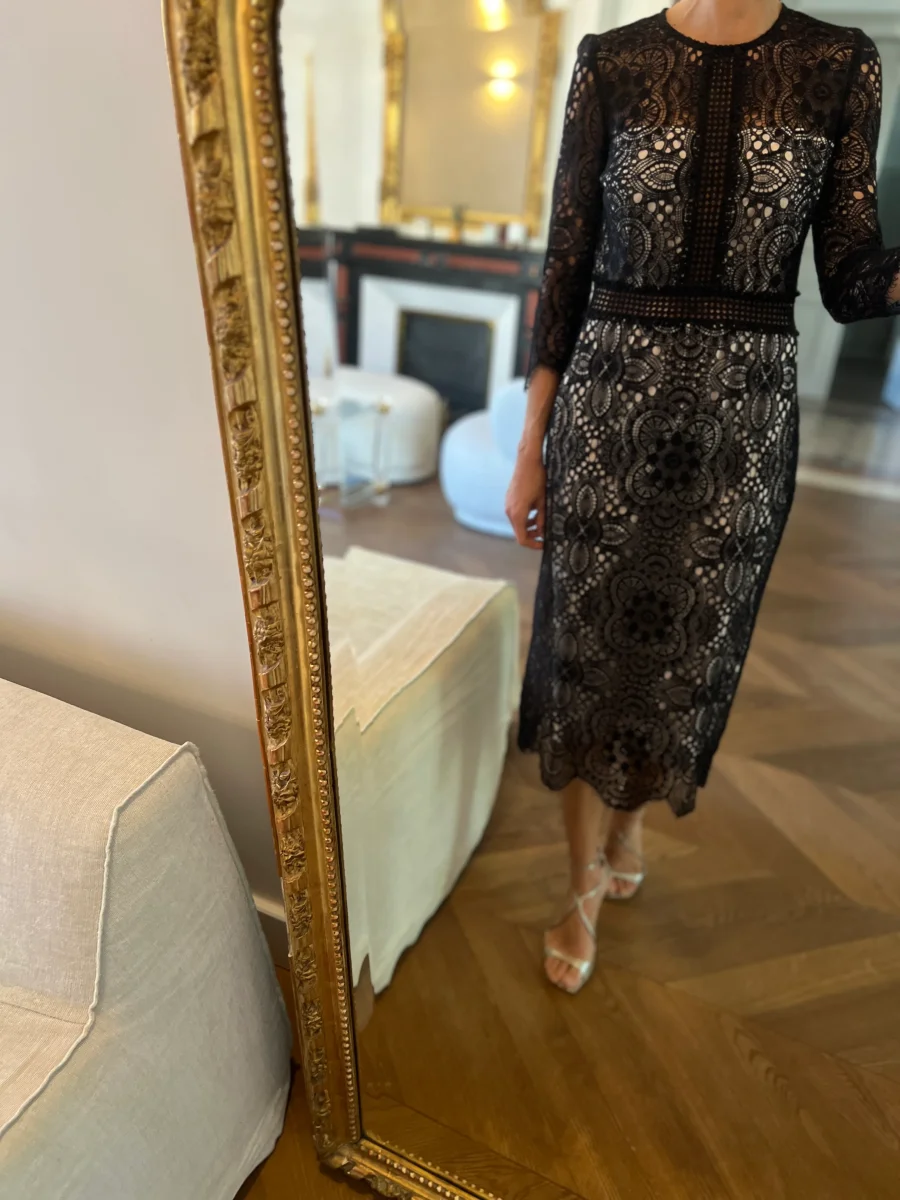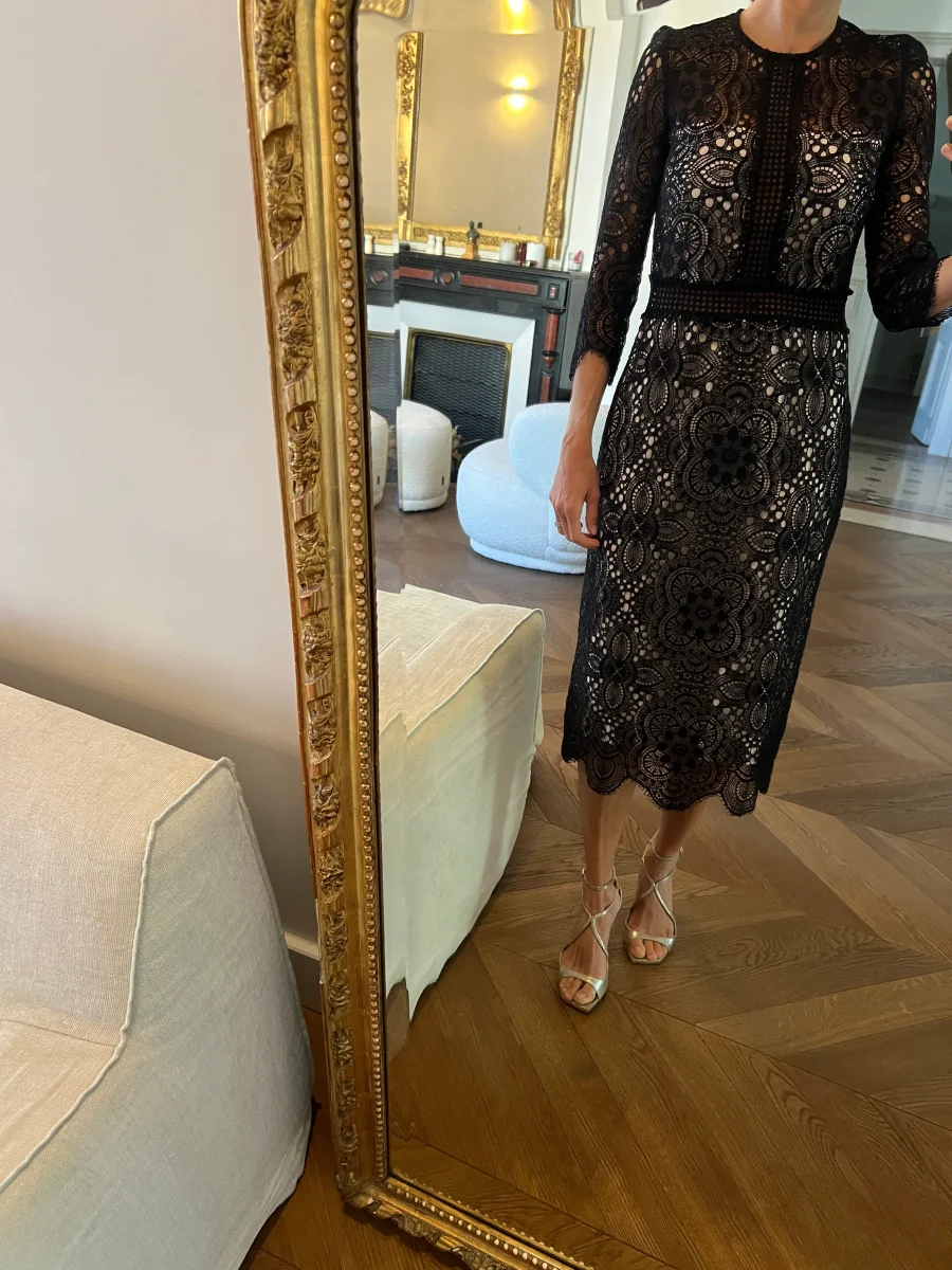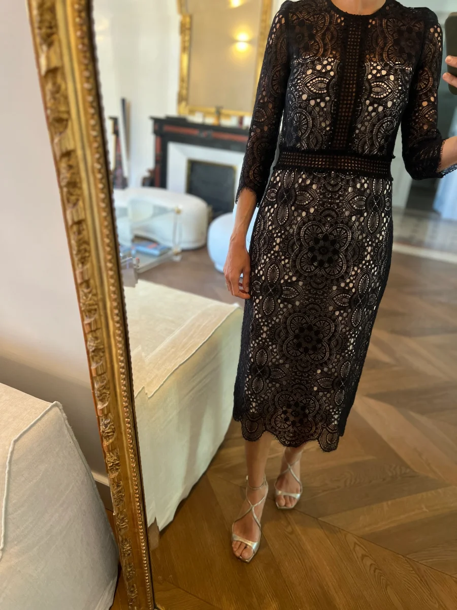 Robe The Kooples broderie noire mi longue