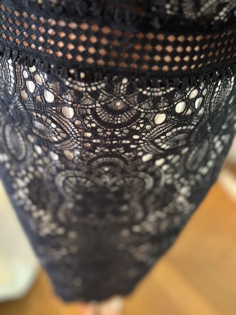 – Robe en tweed et dentelle