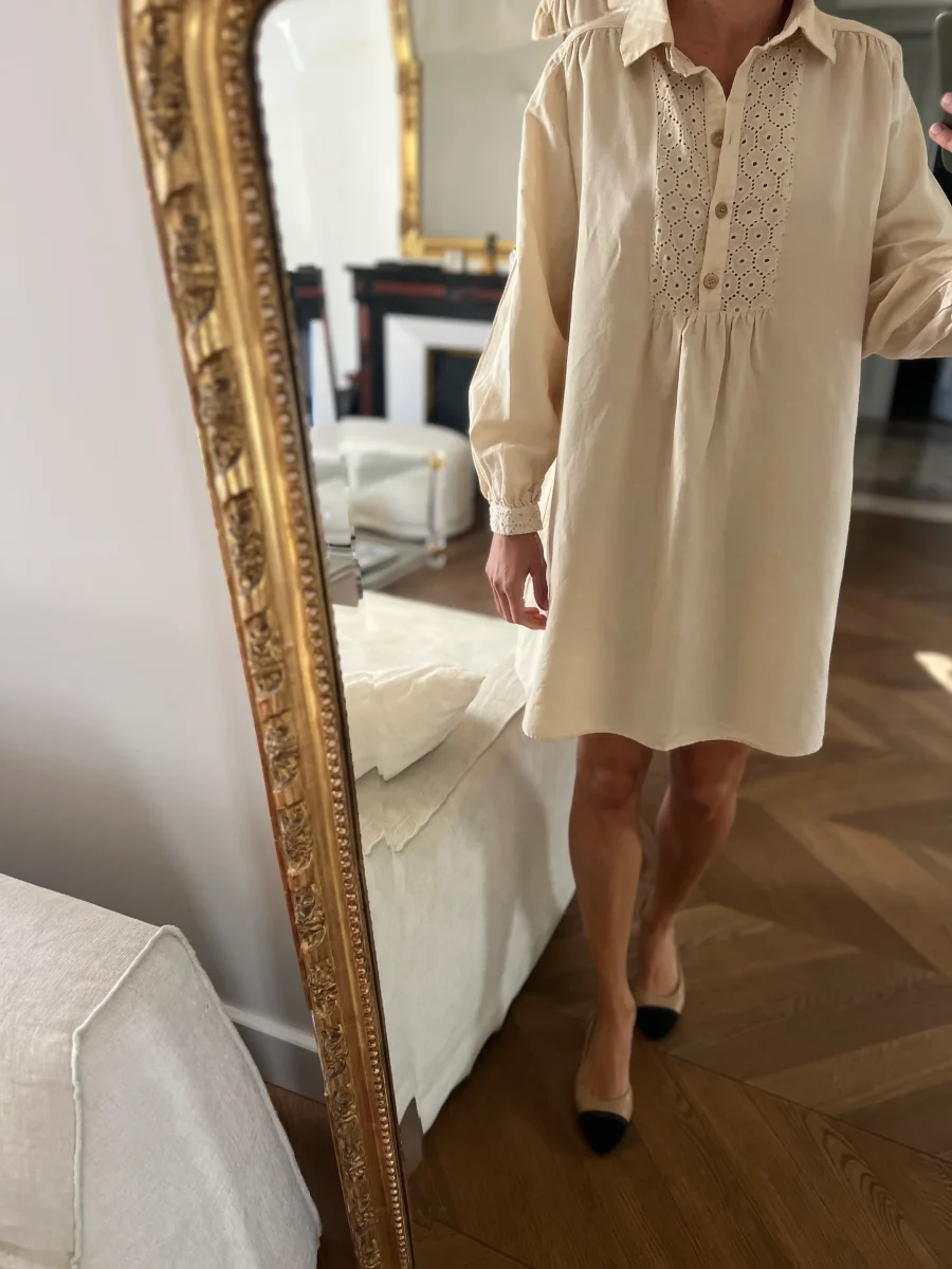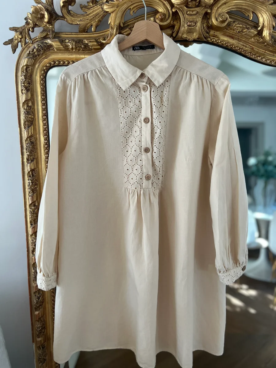 Robe tunique Zara beige avec broferie