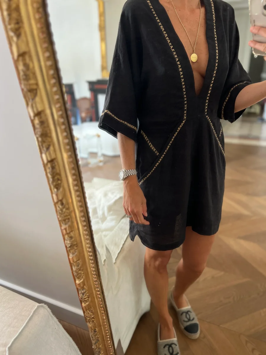 Ariane Brodier Robe Sandro noire manches plumetis