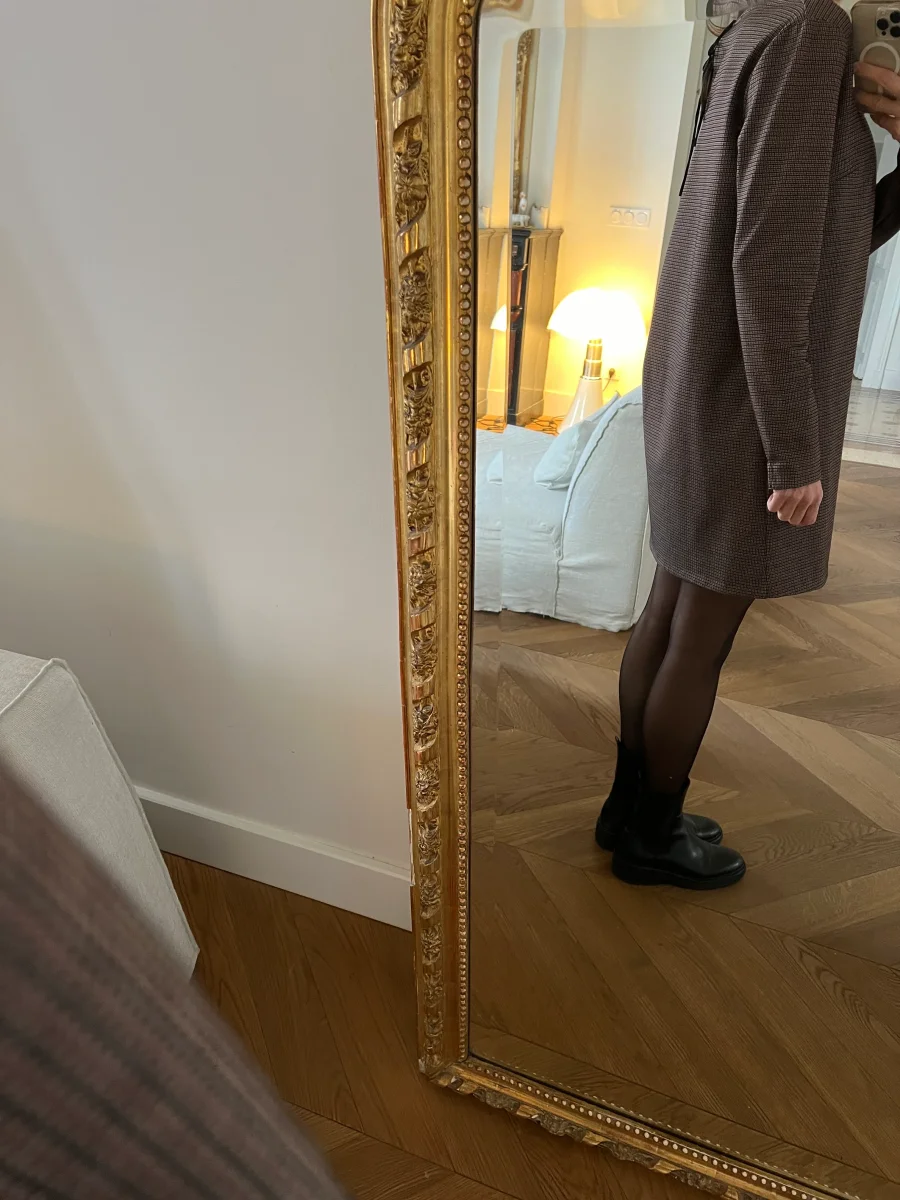 – Robe en tweed et dentelle