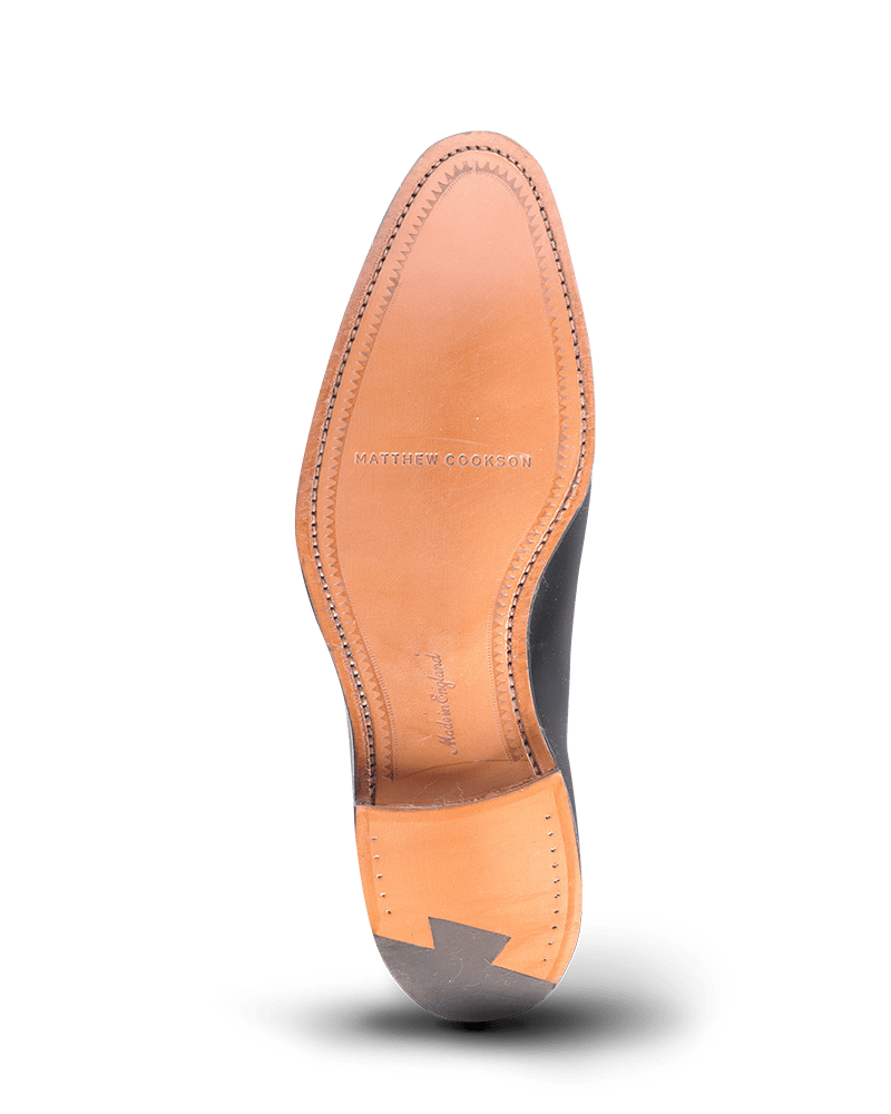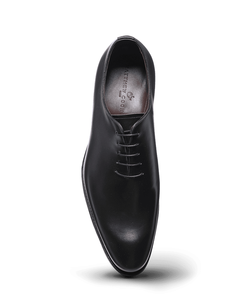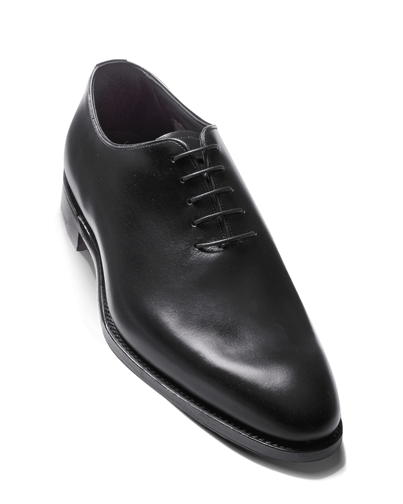 Elégance extrême, ce richelieu est réalisé d’une seule pièce de cuir de pleine fleur sans aucune couture. Semelle cuir, fabrication trépointe Goodyear. Made in England.