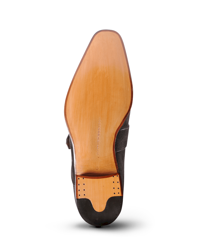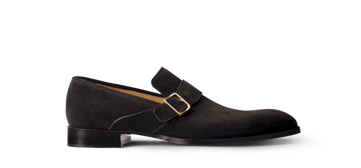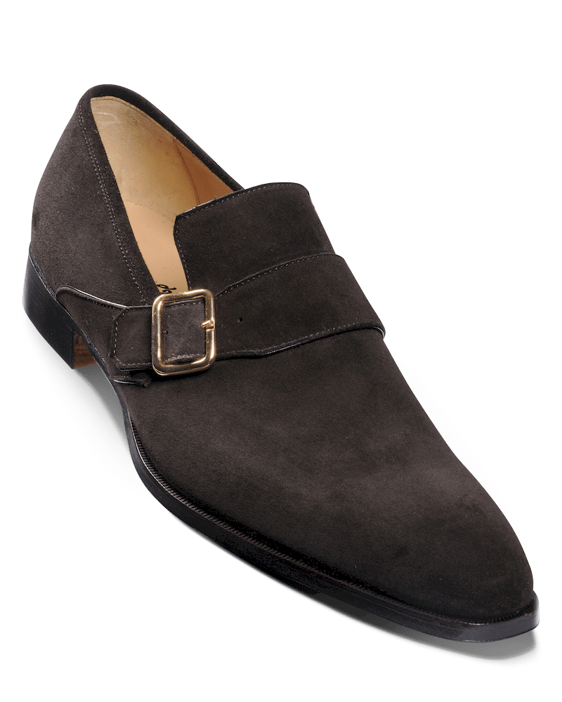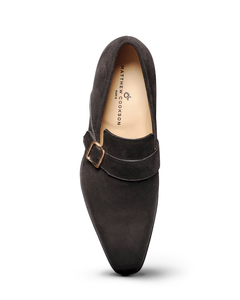Notre version de la boucle traditionnelle, en veau velours chocolat avec une boucle doré. Fabrication cousu blake avec une semelle en cuir simple.