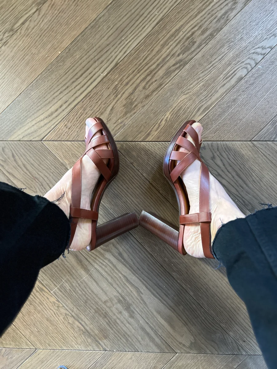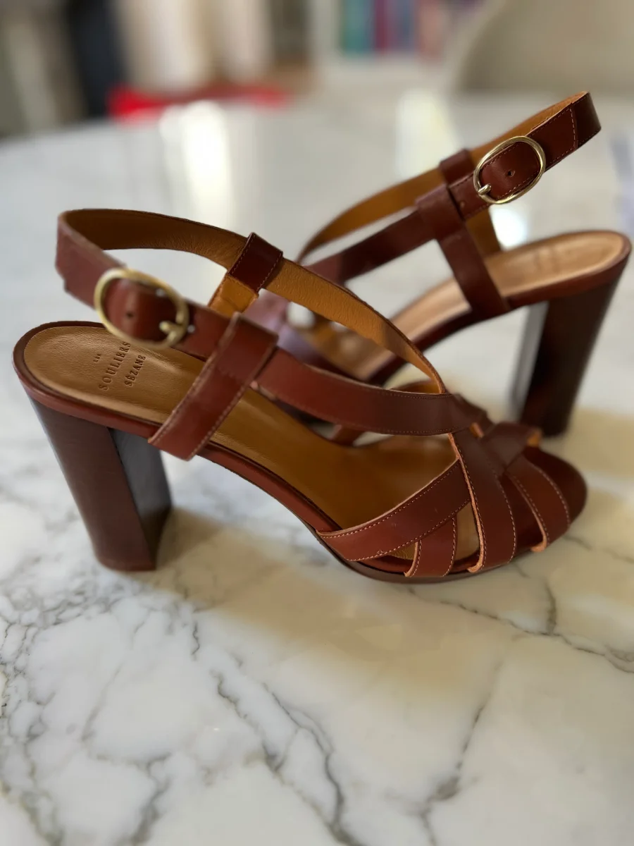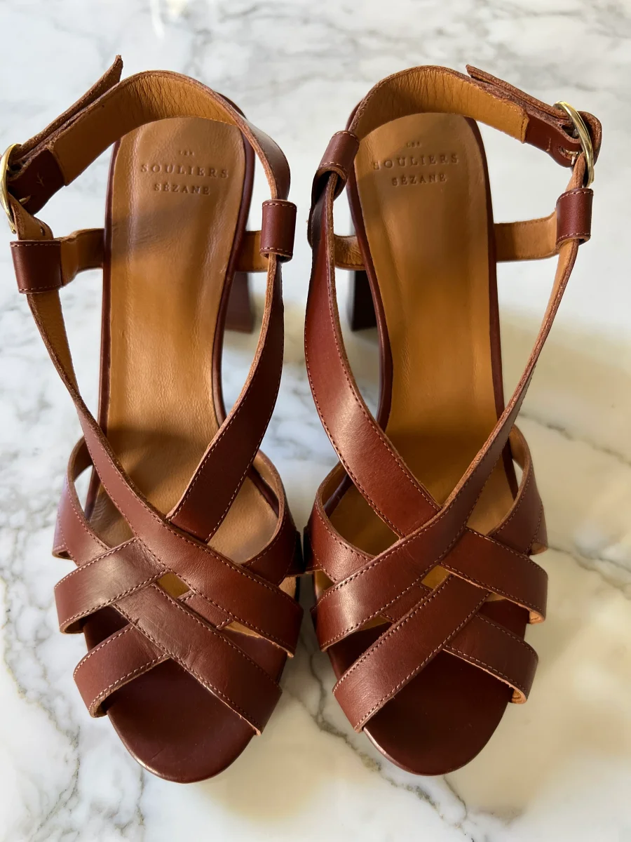 Très bon état comme neuves Marque : Sézane Hauteur des talons : 10cm Pointure 39 100% Cuir Prix d’achat estimé neuf 175€