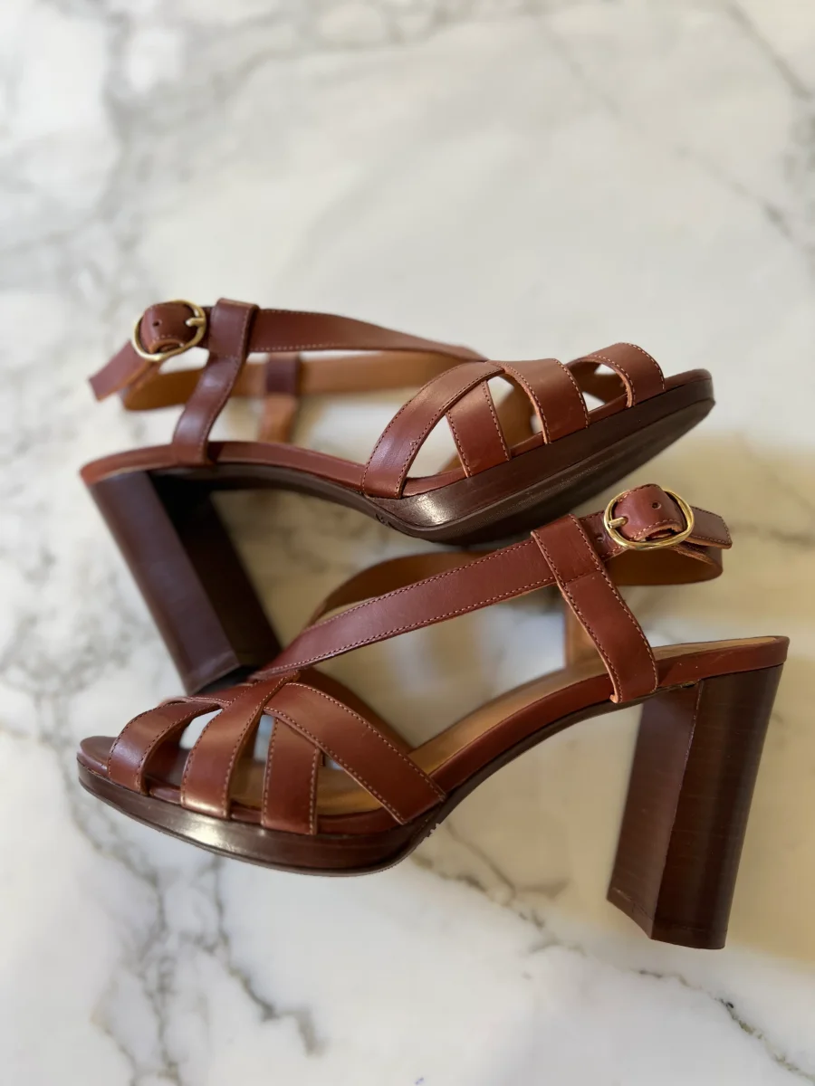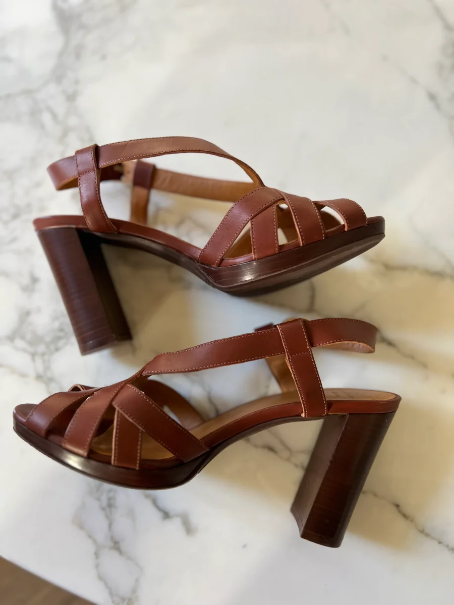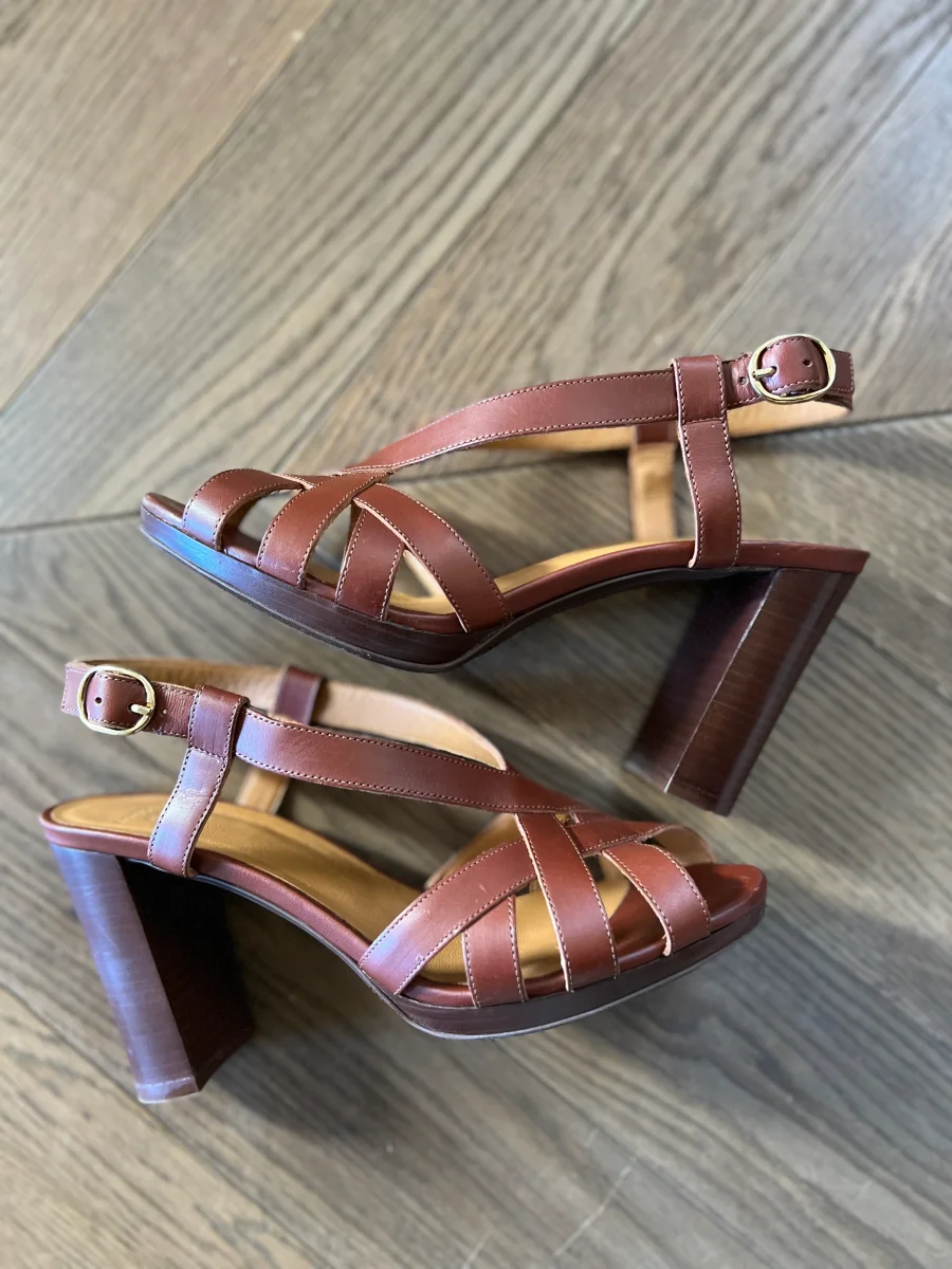 Très bon état comme neuves Marque : Sézane Hauteur des talons : 10cm Pointure 39 100% Cuir Prix d’achat estimé neuf 175€