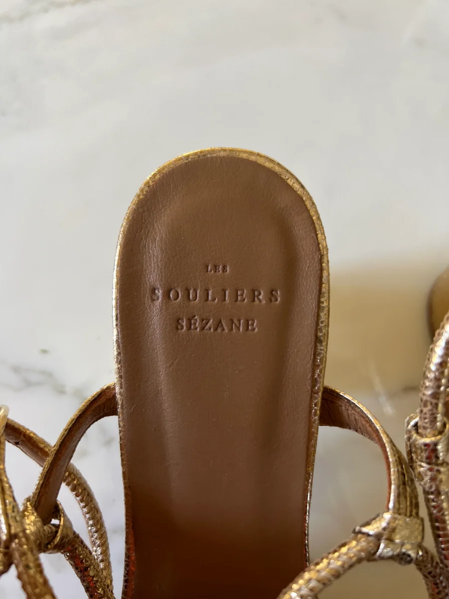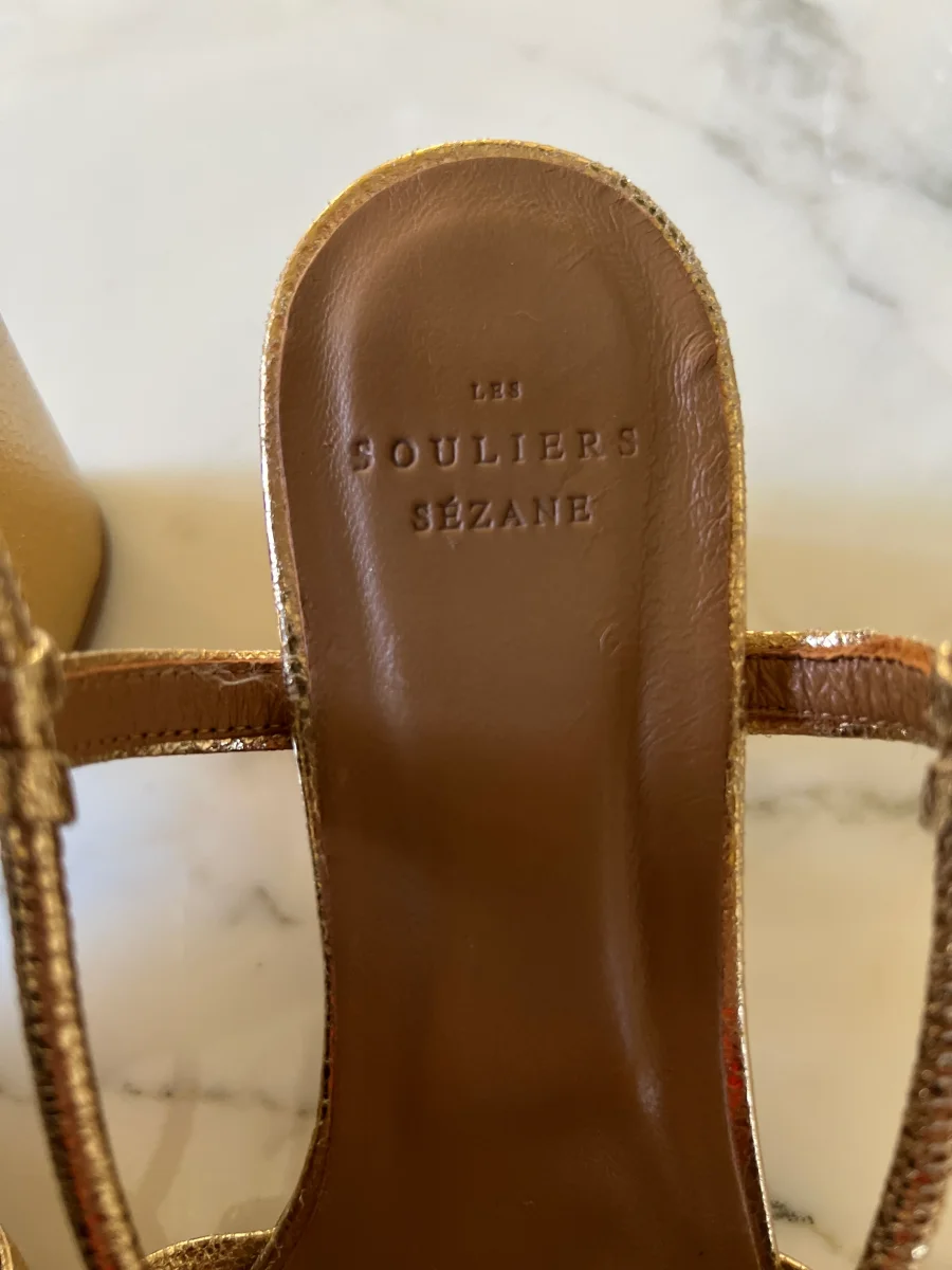 Très bon état comme neuves Marque : Sézane Modèle : Gloria Collection actuelle sur le site Hauteur des talons : 7cm Pointure 38 Prix d’achat estimé neuf 165€