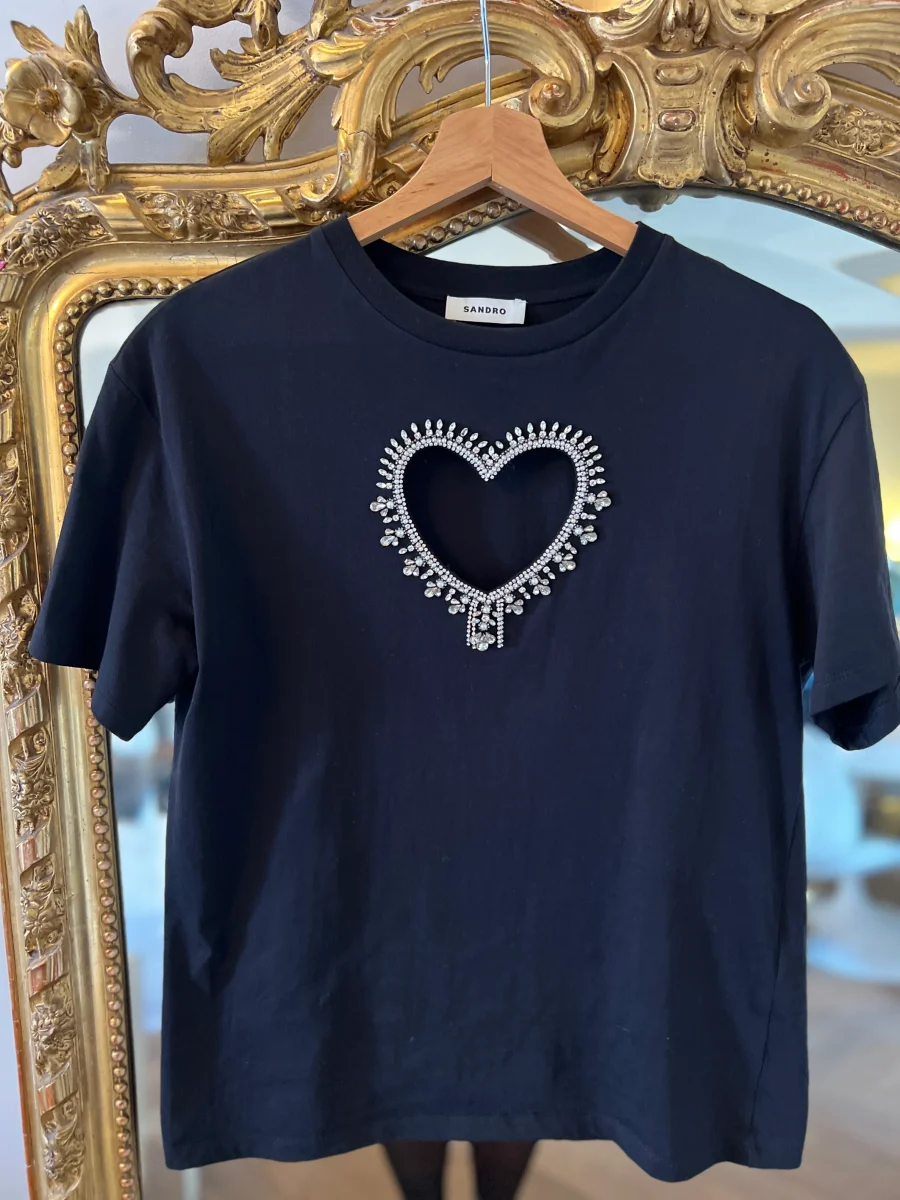 Sandro – T-shirt coeur en diamants
