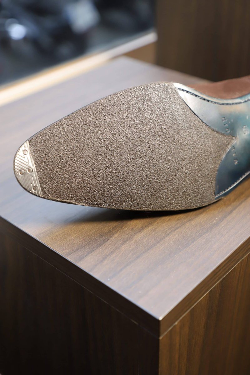 Shoe sole and iron cap plate & handmade « joker » finish