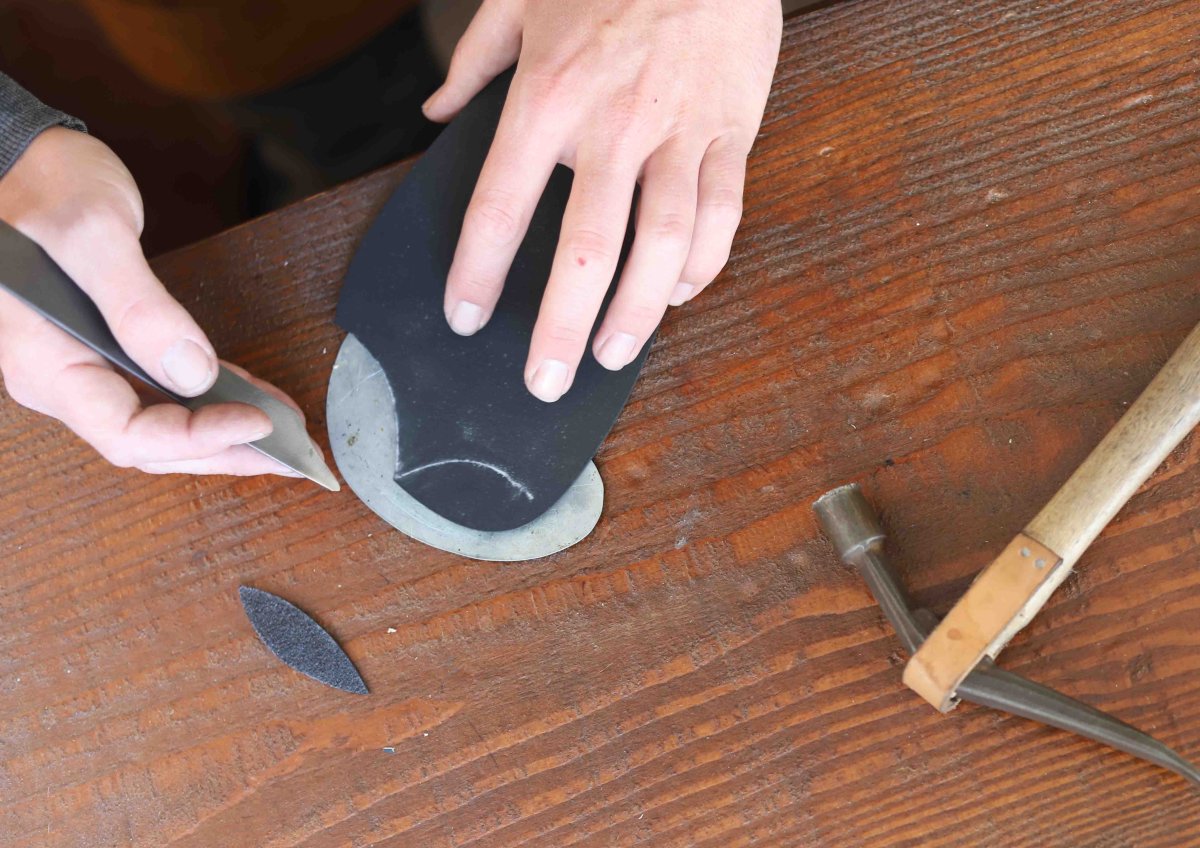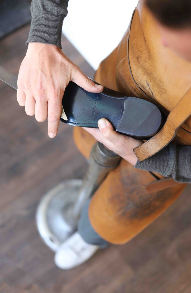Our shoemaker will put a sole and a recessed iron toe plate on each of your new (or slightly worn) shoes.