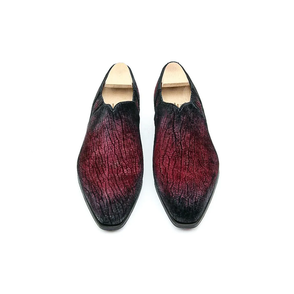 Le Slip-on Archange est un modèle hypercasual chic. Monté sur notre forme Stop à bout carré et flancs marqués; et élancée juste ce qu’il faut pour affiner la silhouette. Réalisé ici dans une peausserie sauvage et précieuse d’hippopotame.