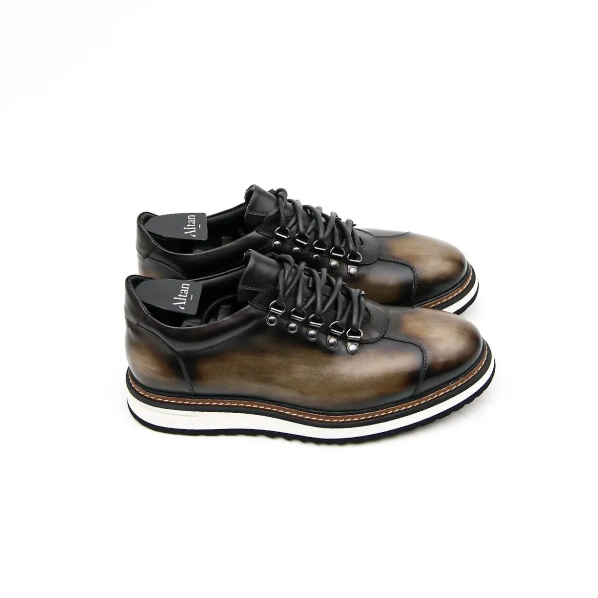 Adam est un modèle hybride entre la sneacker, le soulier et l’après-ski. Montée sur notre forme Ultimoë c’est un modèle résolument hiver et sport chic. Présenté ici dans une patine Tabac.