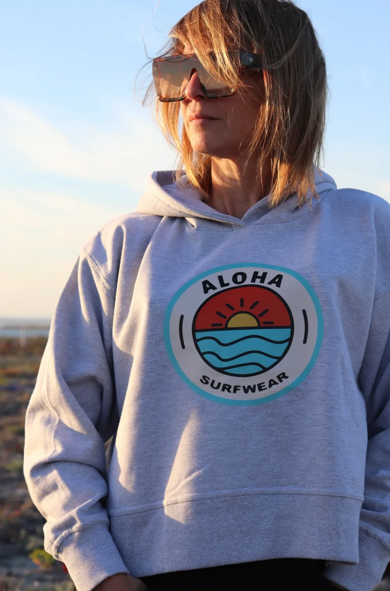 Exprimez votre style inspiré du surf avec le Sweat Femme Crop Aloha 🌴.