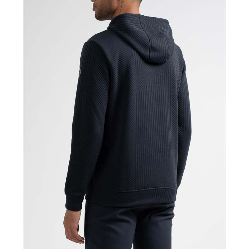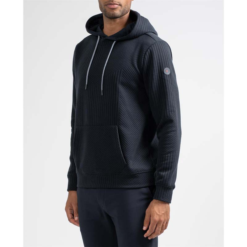Un sweat à capuche avec cordon de serrage au niveau de la capuche.