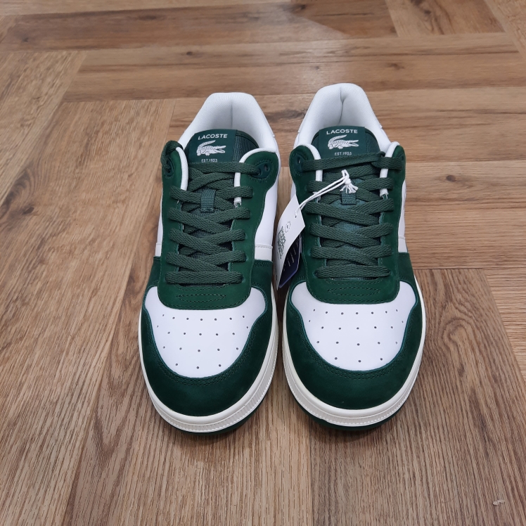 Tige en cuir et suède Perforations sur les panneaux latéraux et l’empeigne pour une meilleure respirabilité Renfort de talon en TPU pour un maintien optimal Étiquette tissée sur la languette avec crocodile et marquage Lacoste Semelle extérieure texturée en caoutchouc robuste et adhérente Crocodile débossé sur le panneau central Poids approximatif d’une chaussure : 490g Tige : 36% Cuir 36% Polyuréthane 28% Suède; Doublure : 100% Polyester recyclé; Semelle intérieure : 100% EVA; Semelle extérieure : 100% Caoutchouc
