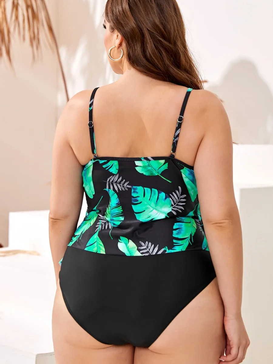 Découvrez notre tankini évasé grande taille, un maillot de bain pour femme fabriqué en polyester et spandex de haute qualité. Disponible dans les tailles XL, XXL, XXXL et 4XL, il s’adapte parfaitement à toutes les morphologies. Son motif floral noir et vert apporte une touche élégante et féminine. Les bretelles confortables offrent un maintien optimal pour vous sentir à l’aise toute la journée.