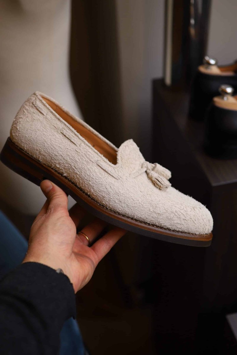 Here’s a beloved member of the (large) loafer family (bit, penny, driving…): the tassel loafer in a new cognac suede leather and Vibram sole sole (the first one in this model).
