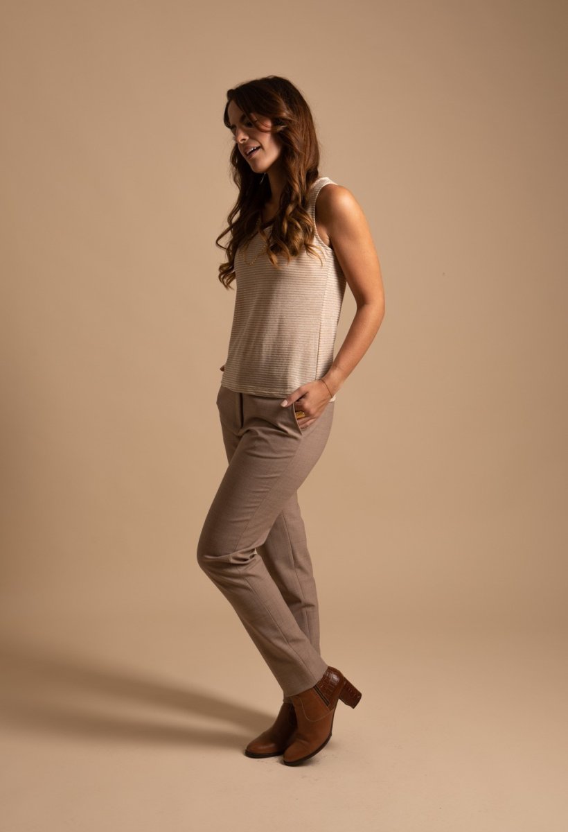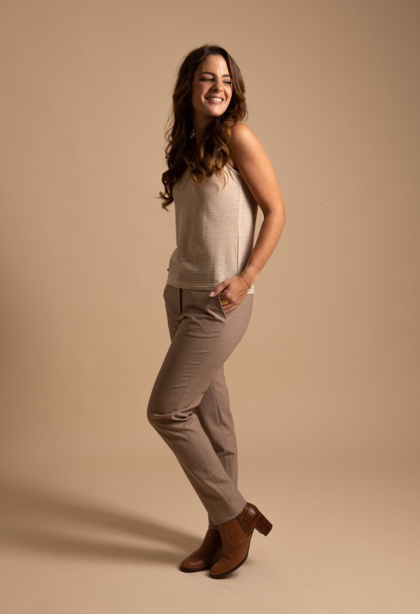 Le pantalon femme, conçu avec une attention minutieuse dans un tissu en laine élasthanne au sein de notre propre atelier à Montpellier. Une pièce chic et intemporelle, grâce à sa forme cigarette et sa couleur beige rosé qui convient à toutes les silhouettes. Pour compléter ce look, associez-le avec la veste Raphaëlle beige. Cette association crée un ensemble parfait pour toutes les occasions.