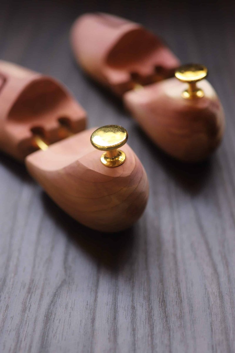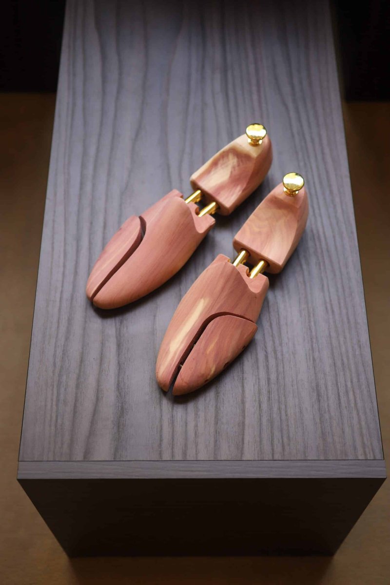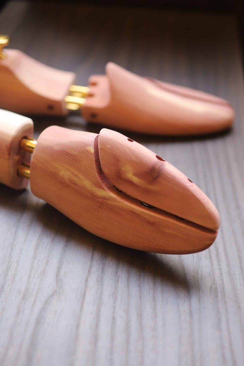 Shoe trees made with untreated and unvarnished wood (cedar) As soon as you take off your pair of shoes, remember to put on the shoe trees to allow them to rest and dry thus avoiding unsightly creases.