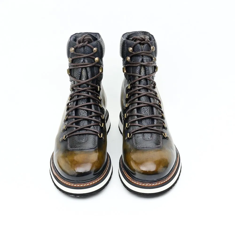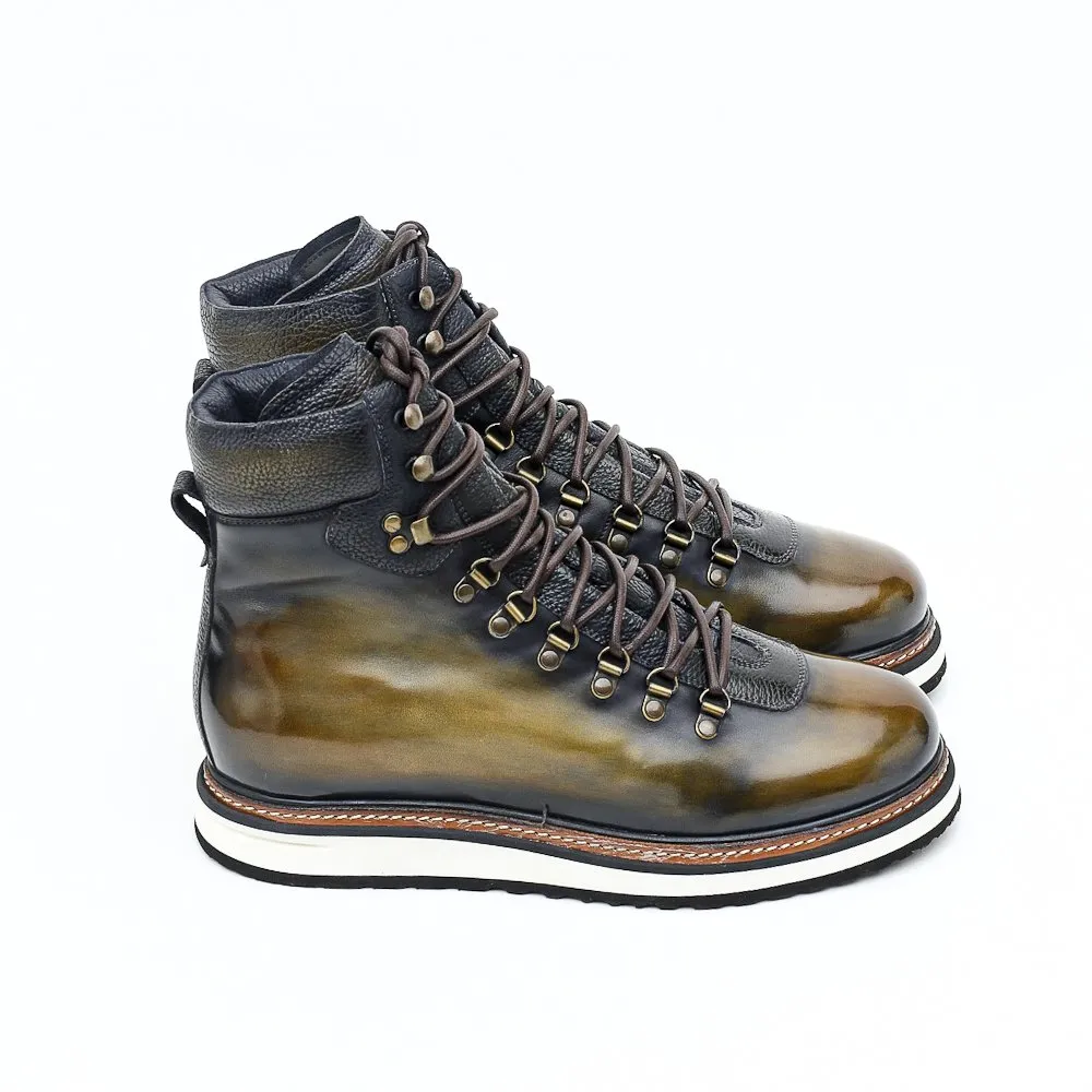 Dernière née de notre collection de bottines, l’Ultimate est une bottine hiver, montante à lacets et entièrement fourrée en Alpaga. Sa languette est cousue tout du long de la tige afin de protéger vos pieds du froid et de toute infiltration d’eau. Proposée en bi-matière box à coloriser et veau grainé, elle est montée sur semelle Vibram.
