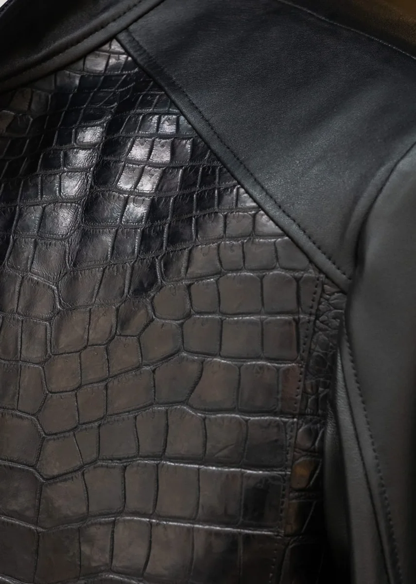 Veste City en cuir de crocodile noir & agneau plongé