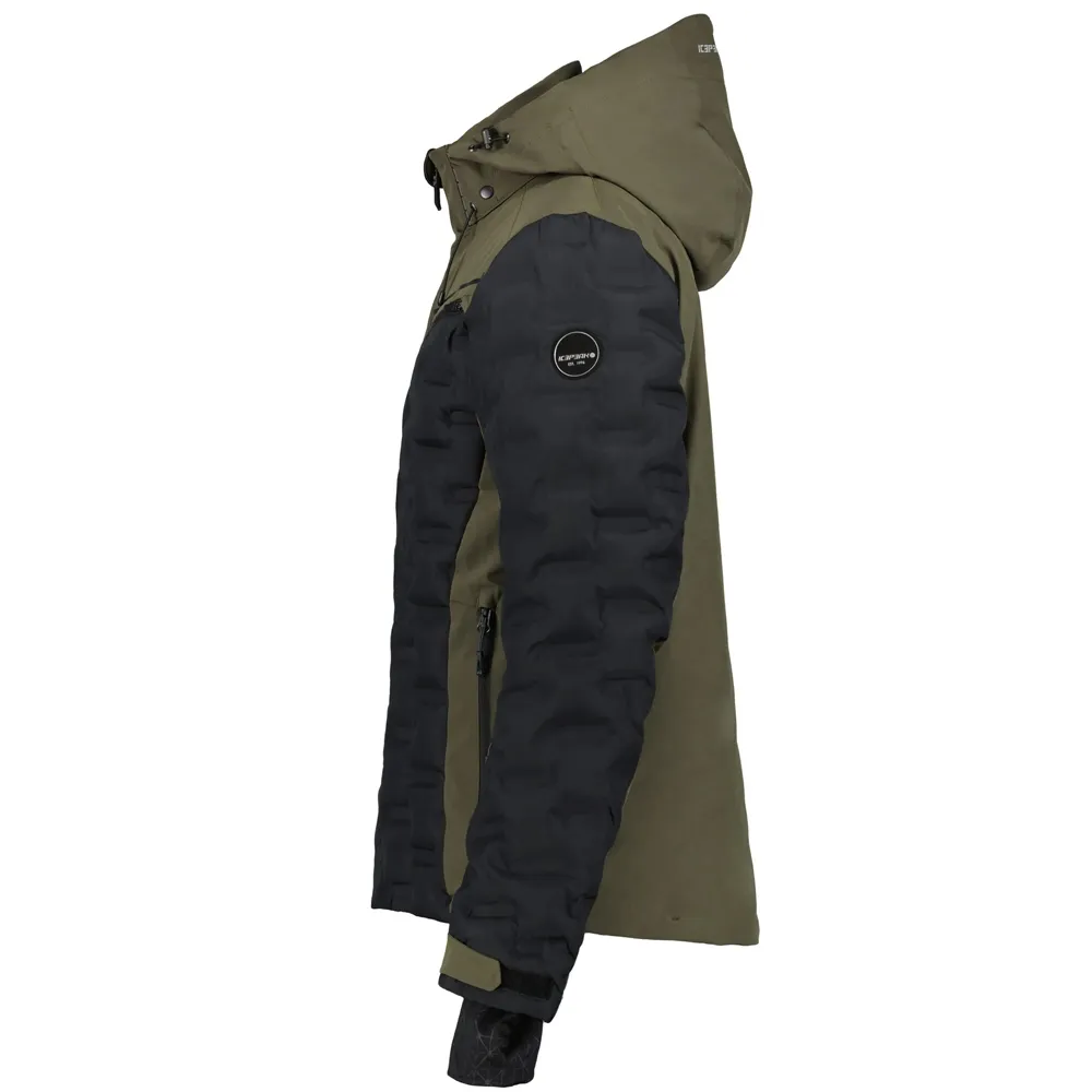 Cette veste de ski de la marque Icepeak possède une isolation sur le tronc. Sa membrane déperlante en fait un vêtement efficace par temps froid et neigeux.