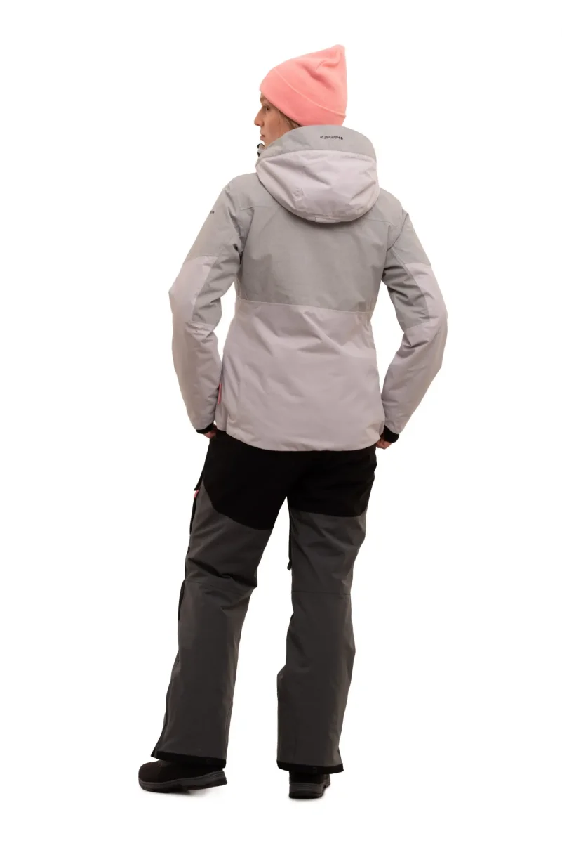 Cette veste de ski bi-colore conviendra aux skieuses à la recherche d’un équipement technique et confortable. Ses détails roses sur les différents zip lui apportent une touche originale.