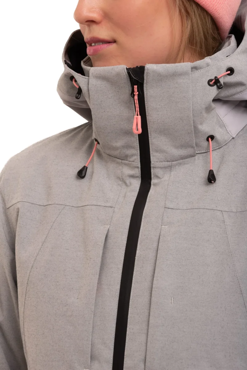 Membrane deux couches Zips étanches PFC Free Capuche amovible Manchons avec passe-pouces Jupe pare-neige Imperméabilité : 10000 mm Respirabilité : 5000 g/m2/24h
