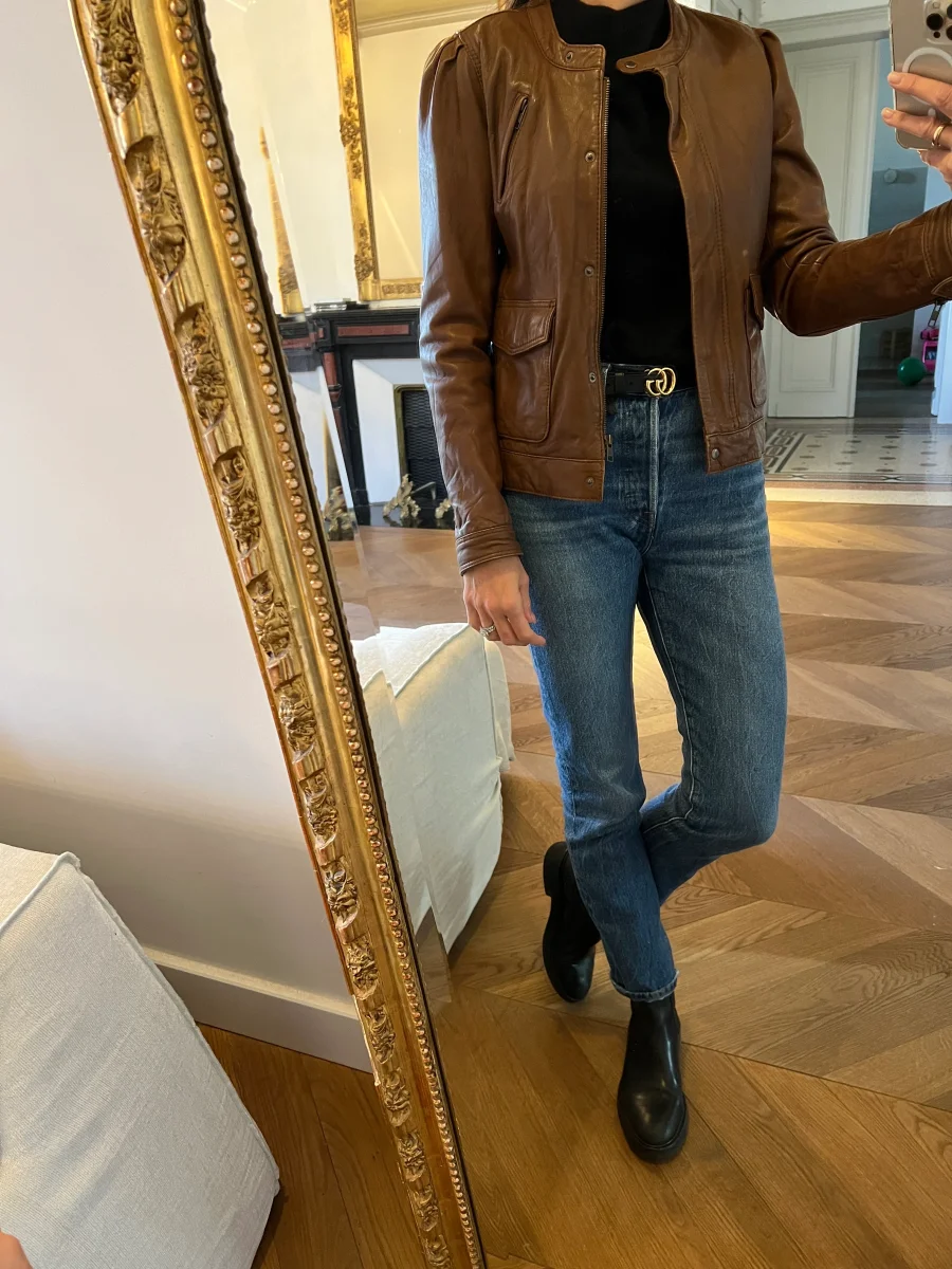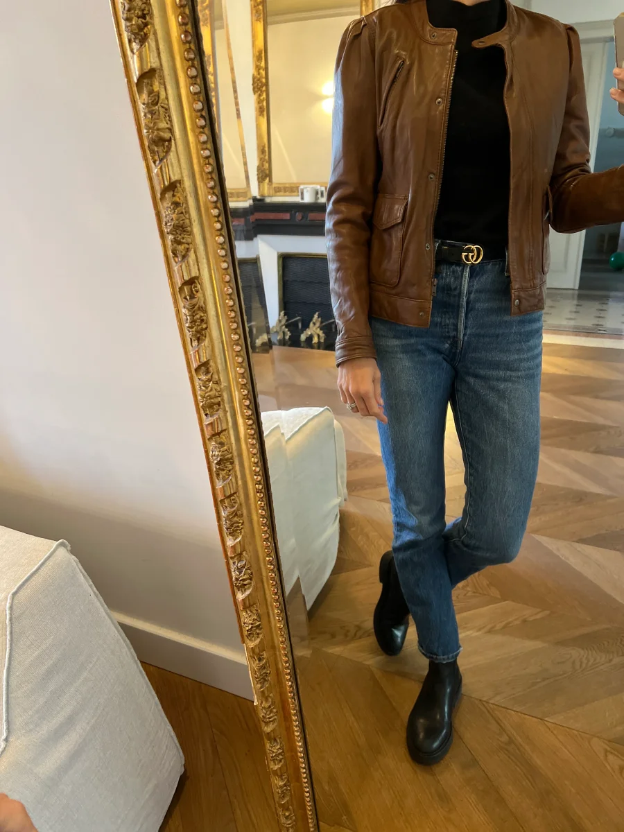 Bon état général (quelques petites traces d’usure cf.photos) Taille 1 100% cuir Pour la longueur je mesure 1m71 Prix d’achat estimé neuf 595€