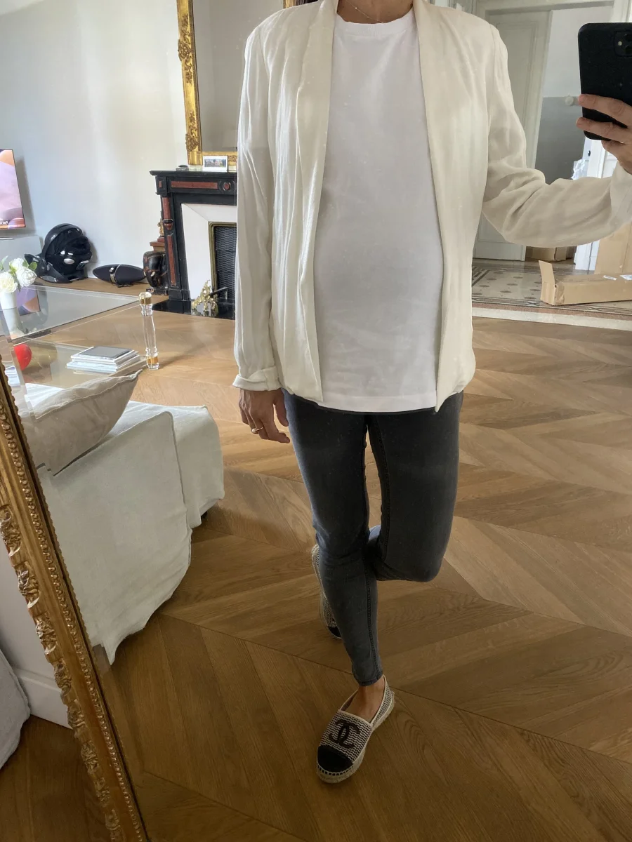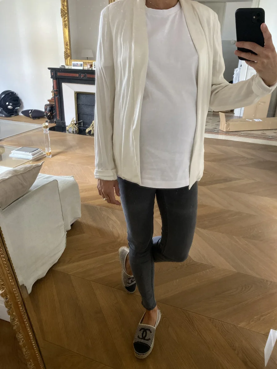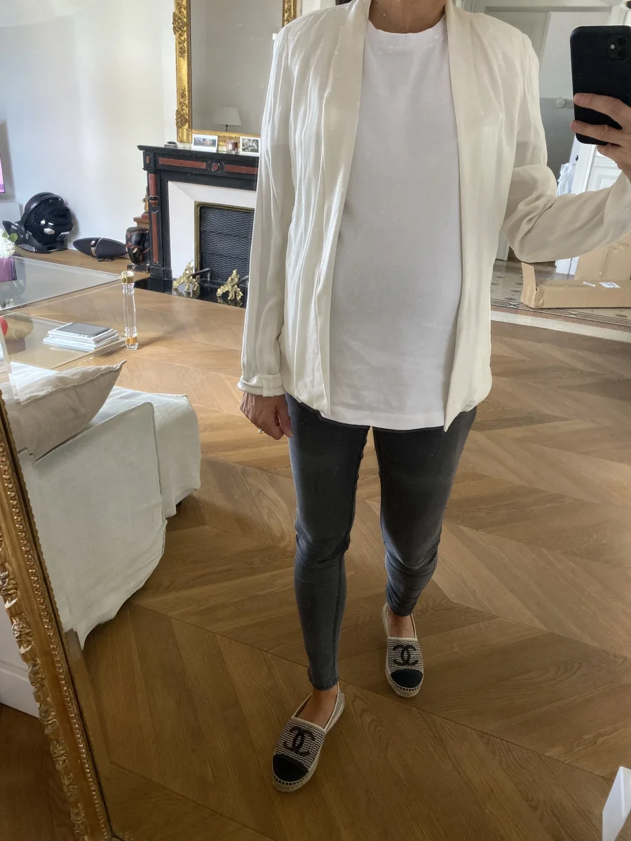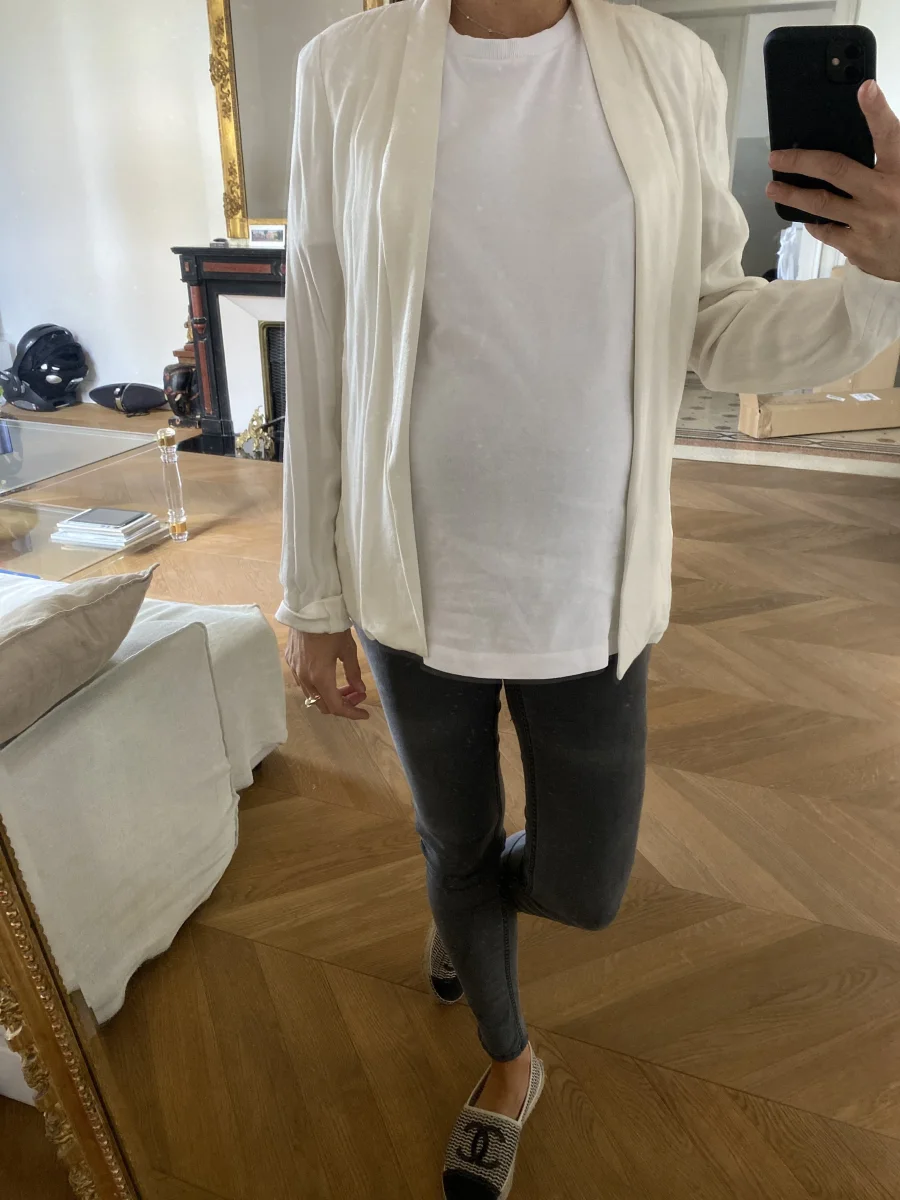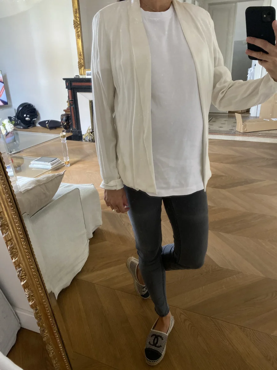 Veste fluide American Vintage ecrue avec bordure satinée