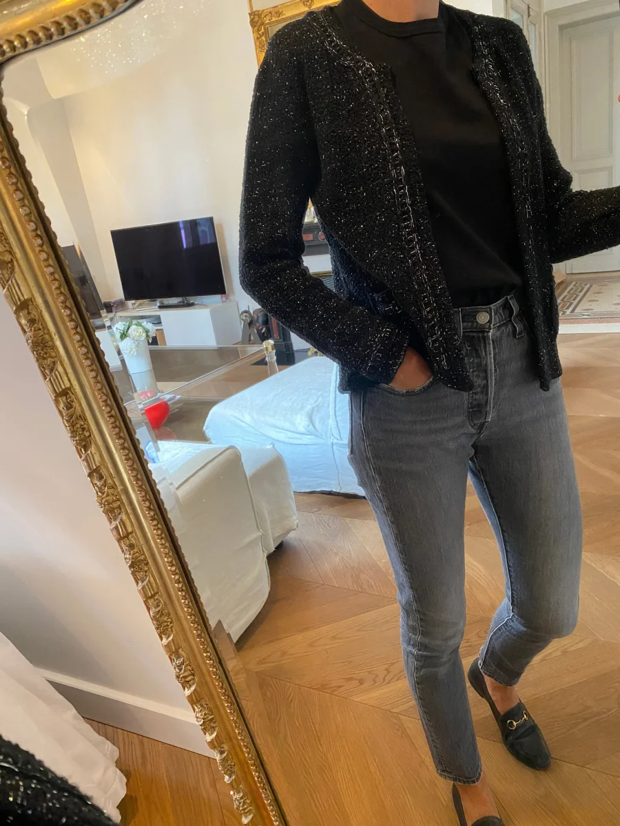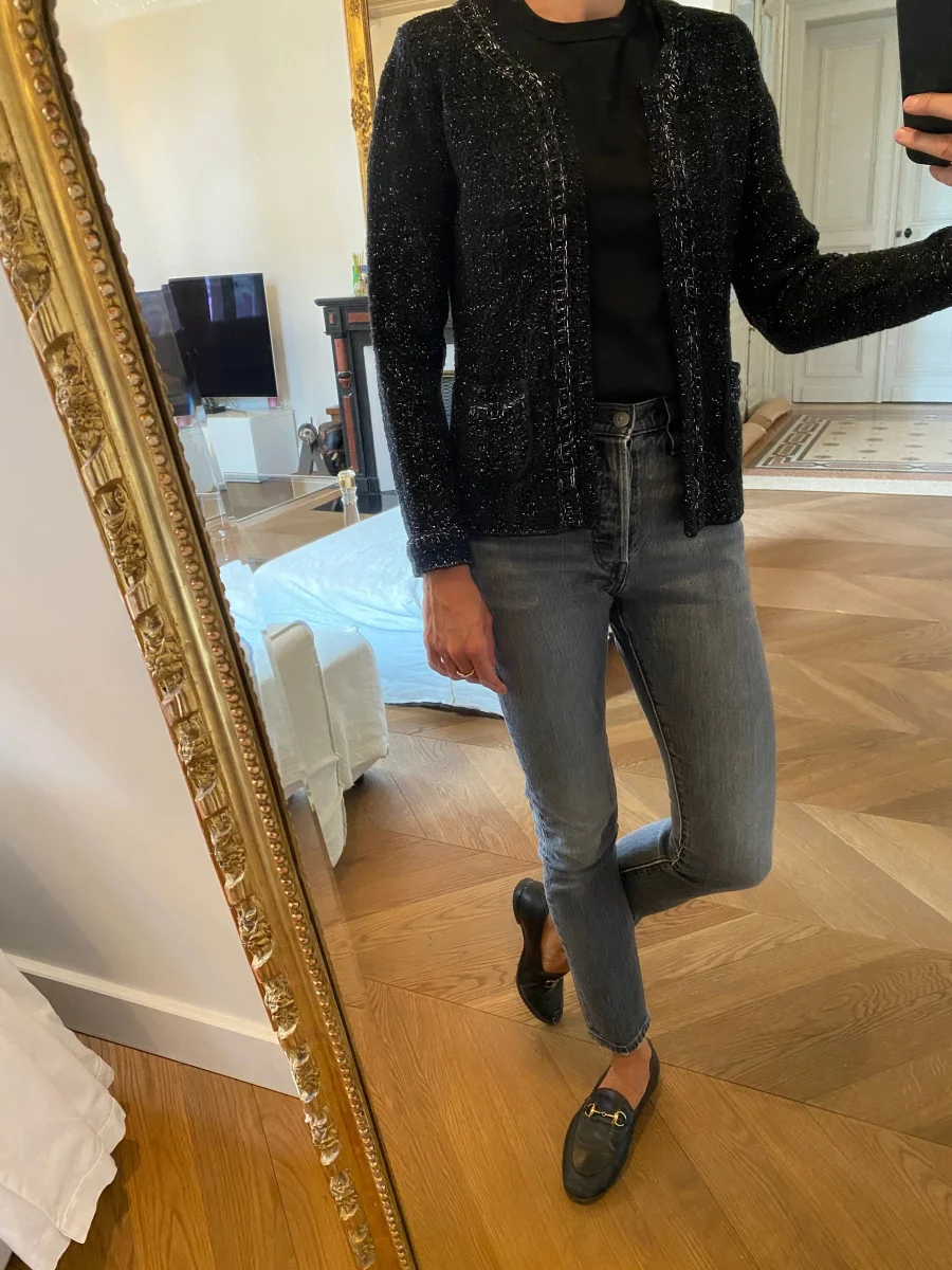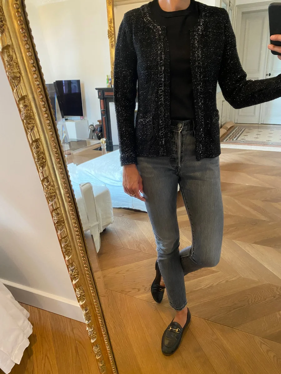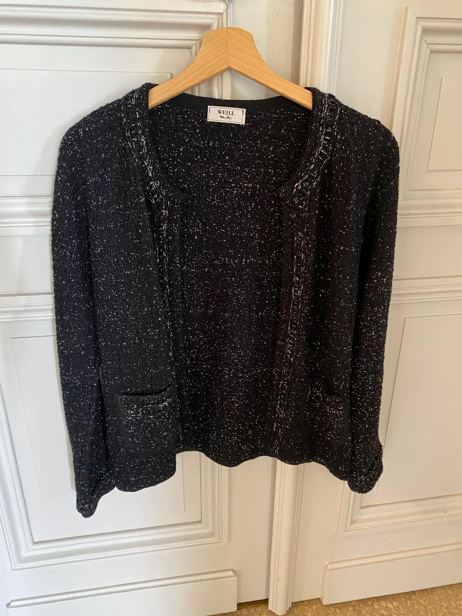 Très bon état Taille 1 48% Acrylique 48% Laine Pour la longueur je mesure 1m71 Prix d’achat estimé 249€