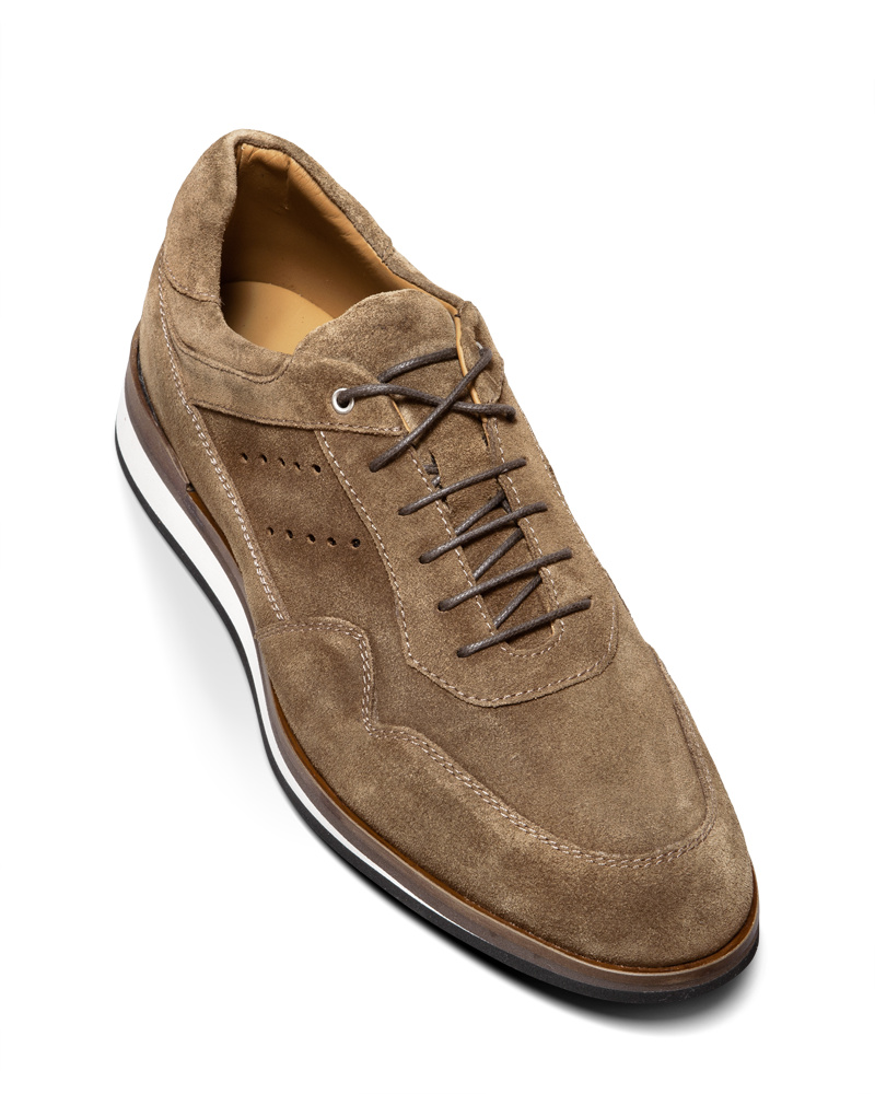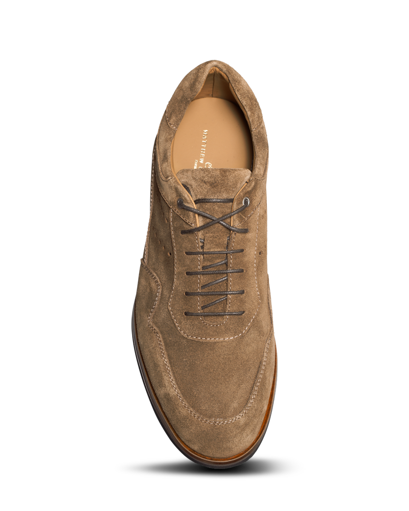 Le modèle Woolcott en veau velours camel est assurément parfait pour parcourir la ville avec aisance et élégance. Semelle en gomme Vibram.