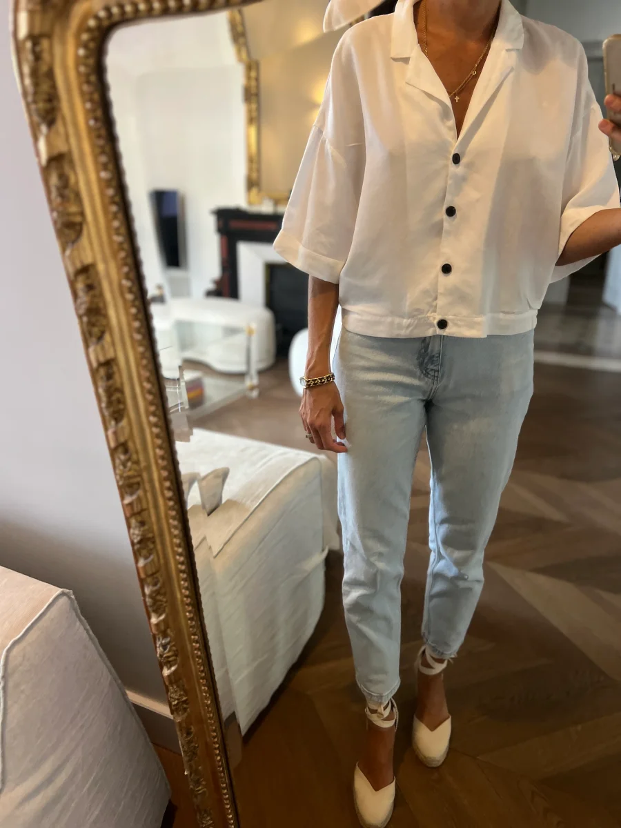Zara – Chemise blanche courte boutons noirs