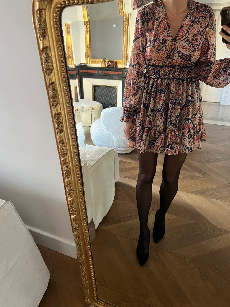 Zara – Robe colorée fluide col V boutons