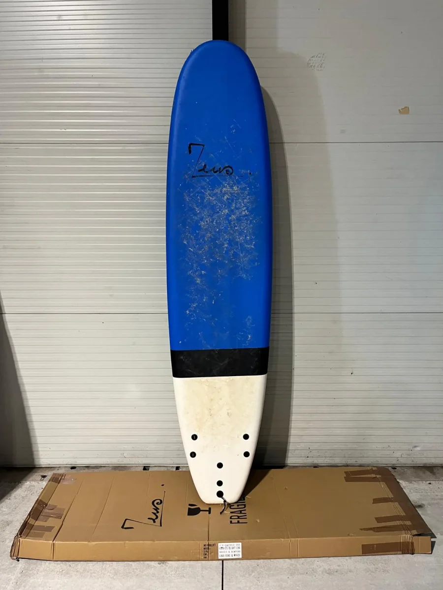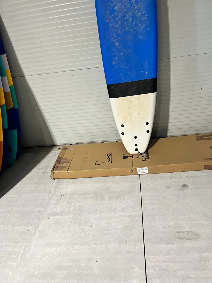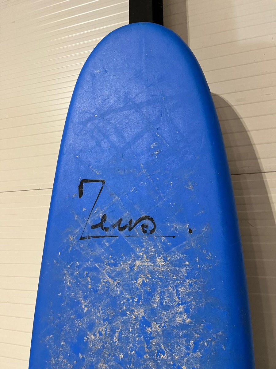 8’6 mielo Eva HB : abîmée sur le dessous suite à un choc de transport. Réparée pour éviter les entrées d’eau. Planche utilisée en location cet été. État correct. Prix : 190€