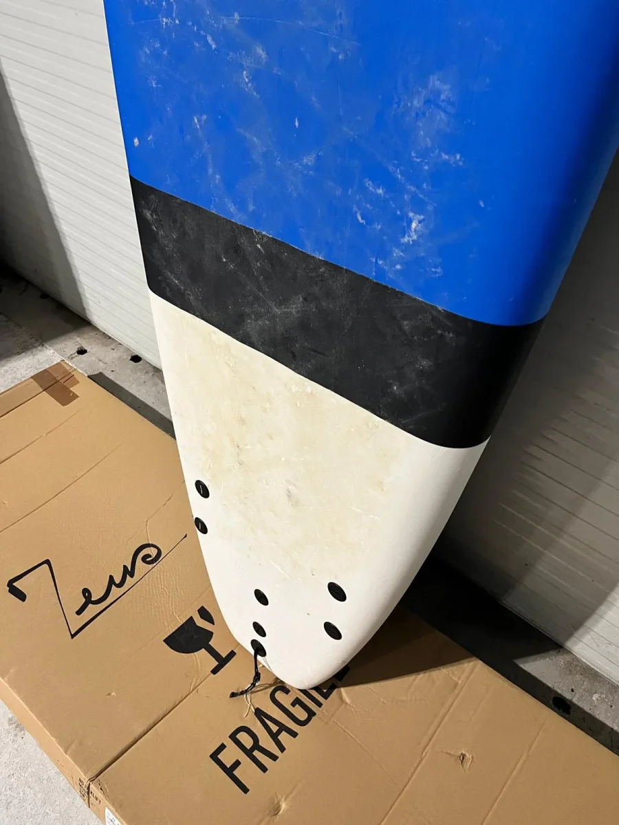 8’6 mielo Eva HB : abîmée sur le dessous suite à un choc de transport. Réparée pour éviter les entrées d’eau.